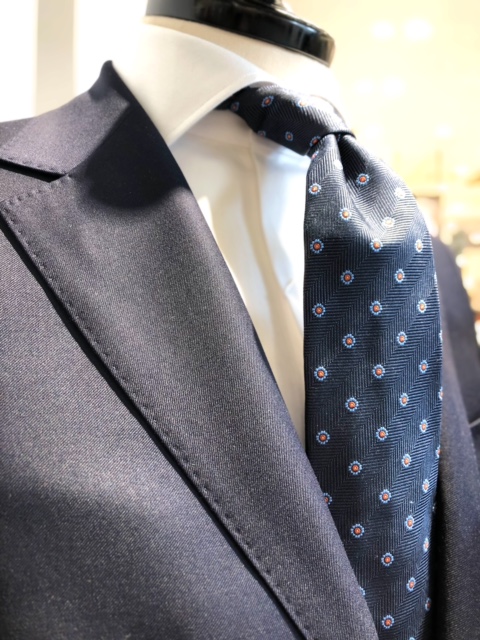 ホワイトシャツに小紋柄のネクタイで 堅めな雰囲気が好印象の入社式などに🌸