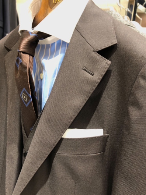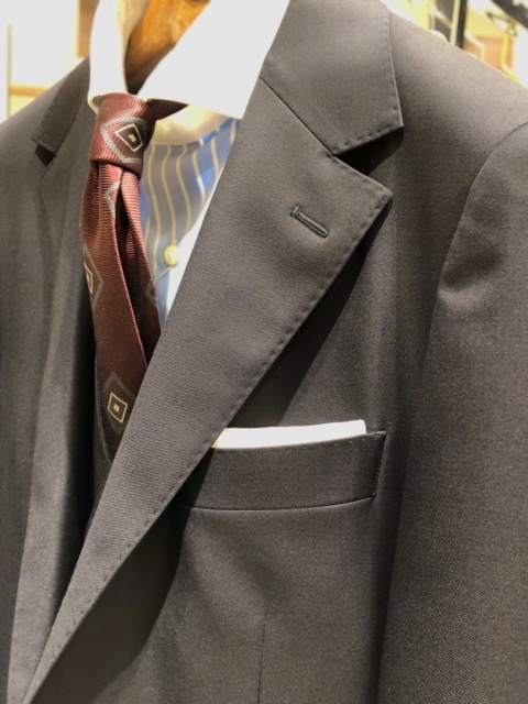 こちらはイタリアの生地メーカーの素材を採用したベスト付きスーツです。