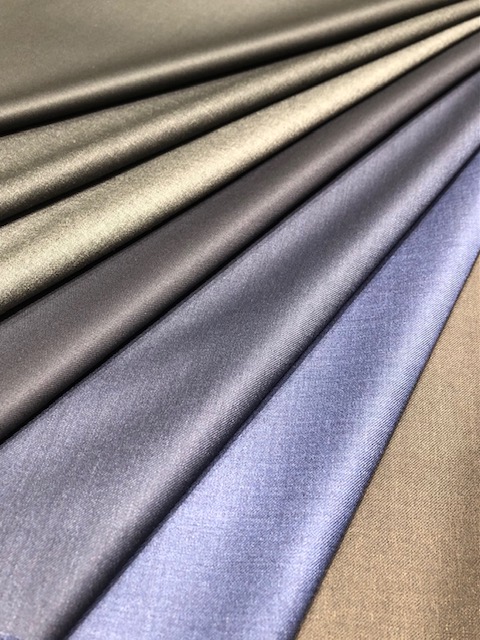良質なウールの光沢と滑らかな肌触りの生地は