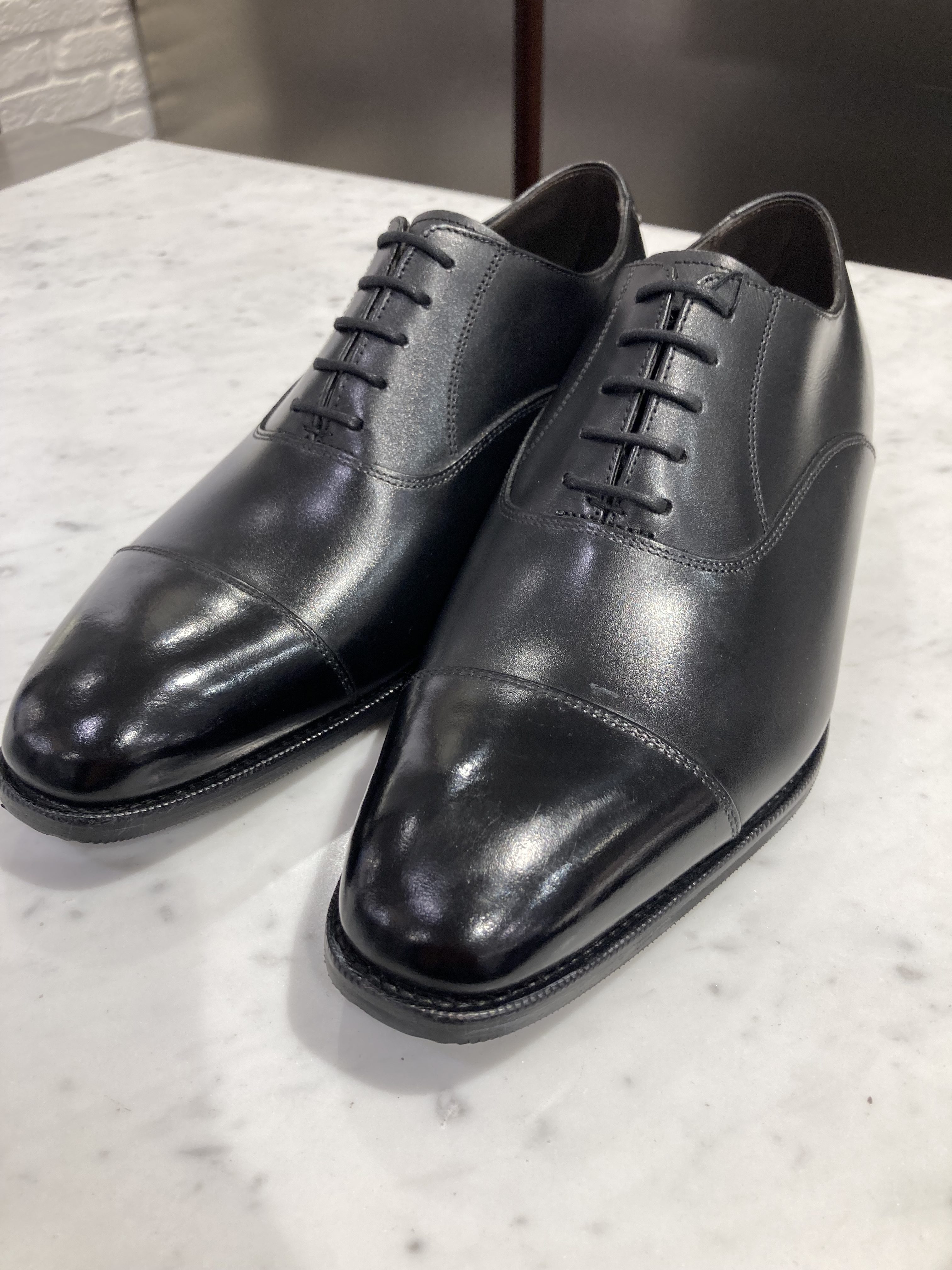 シューズも黒のストレートチップを
