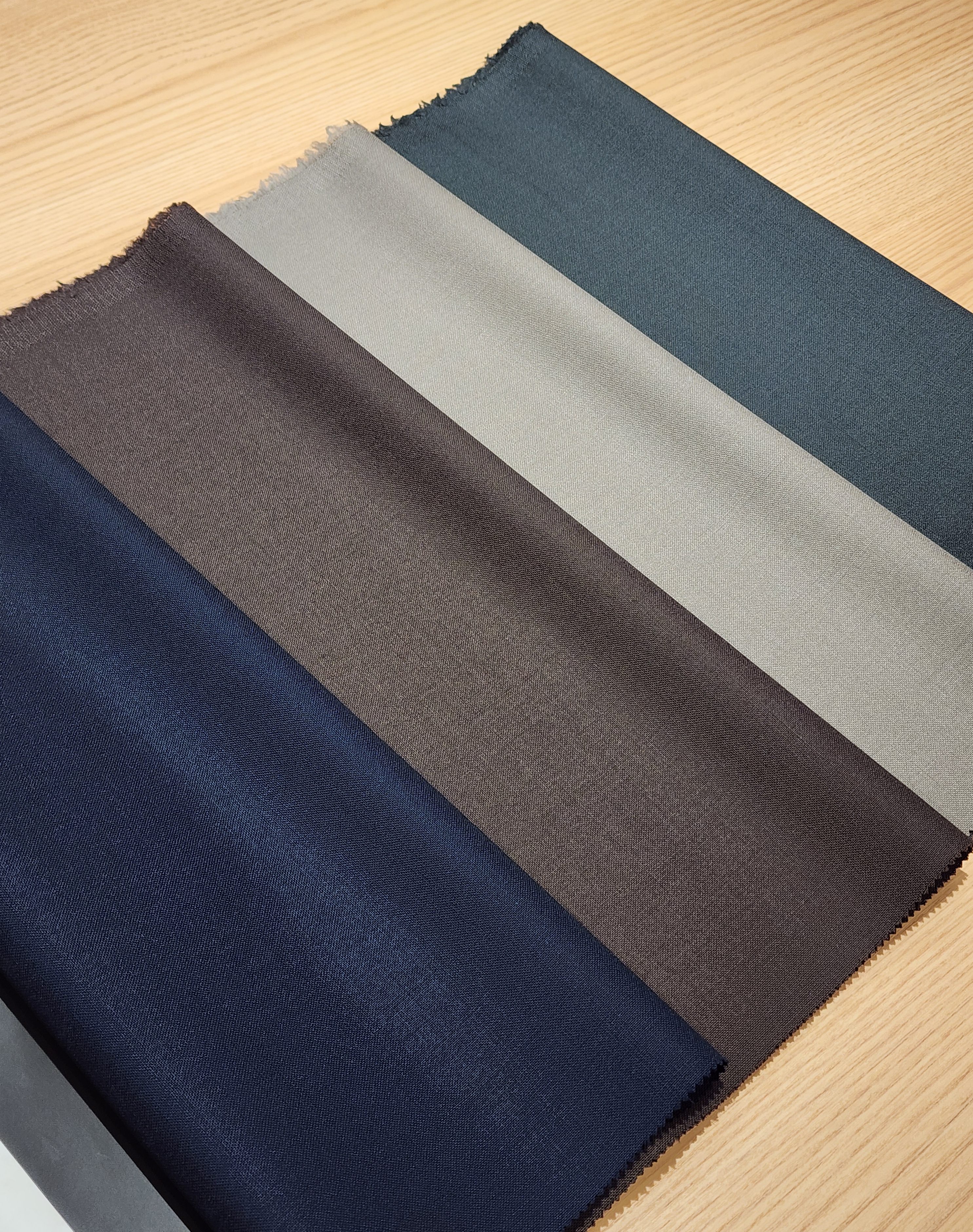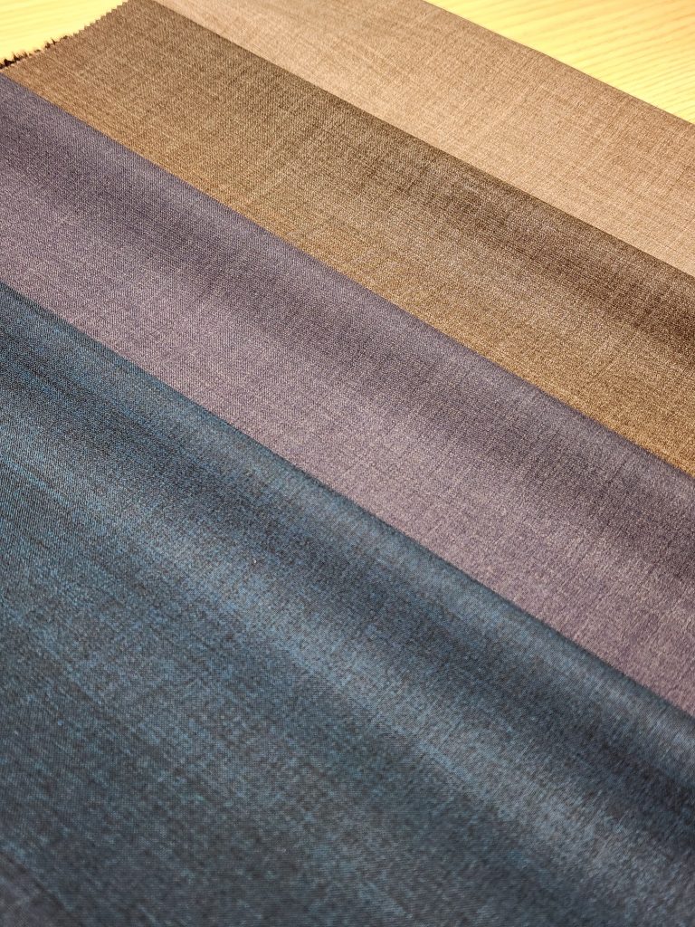 細番手のメリノウールSUPER130’sの柔らかさを活かした大人な色気と艶感が特徴の生地です。