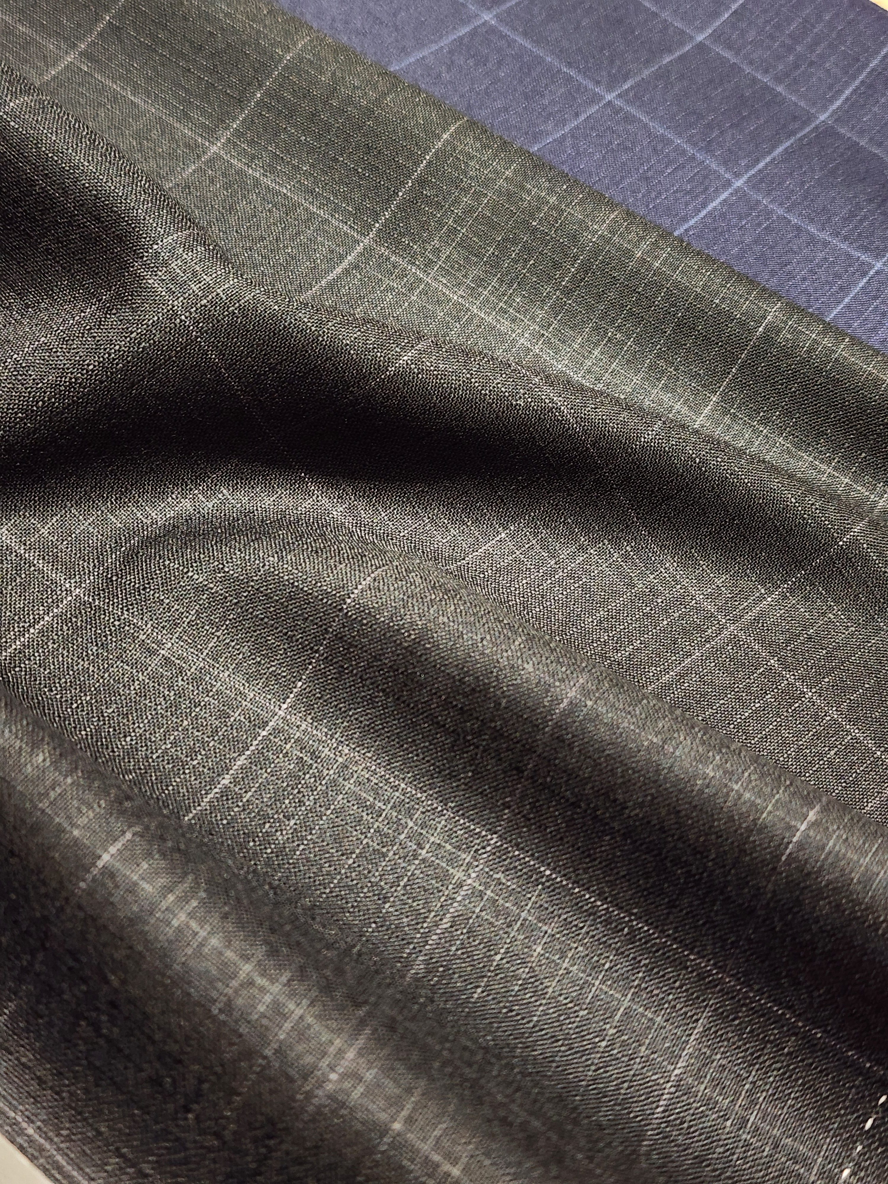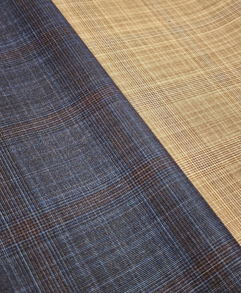 グレンチェックの生地もかすれ調が特徴で、春夏らしく清涼感があります。