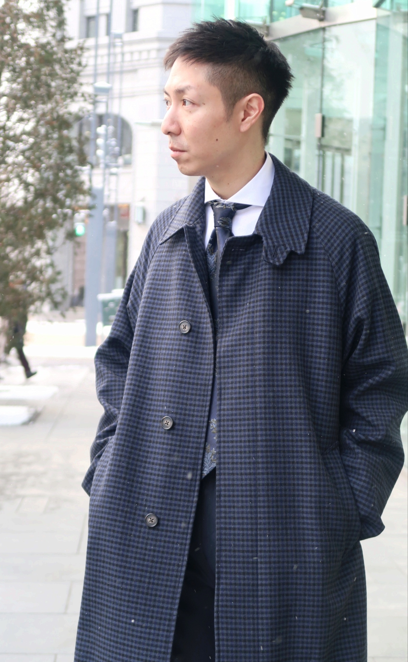 ガンクラブチェックが男らしいステンカラーコート✨