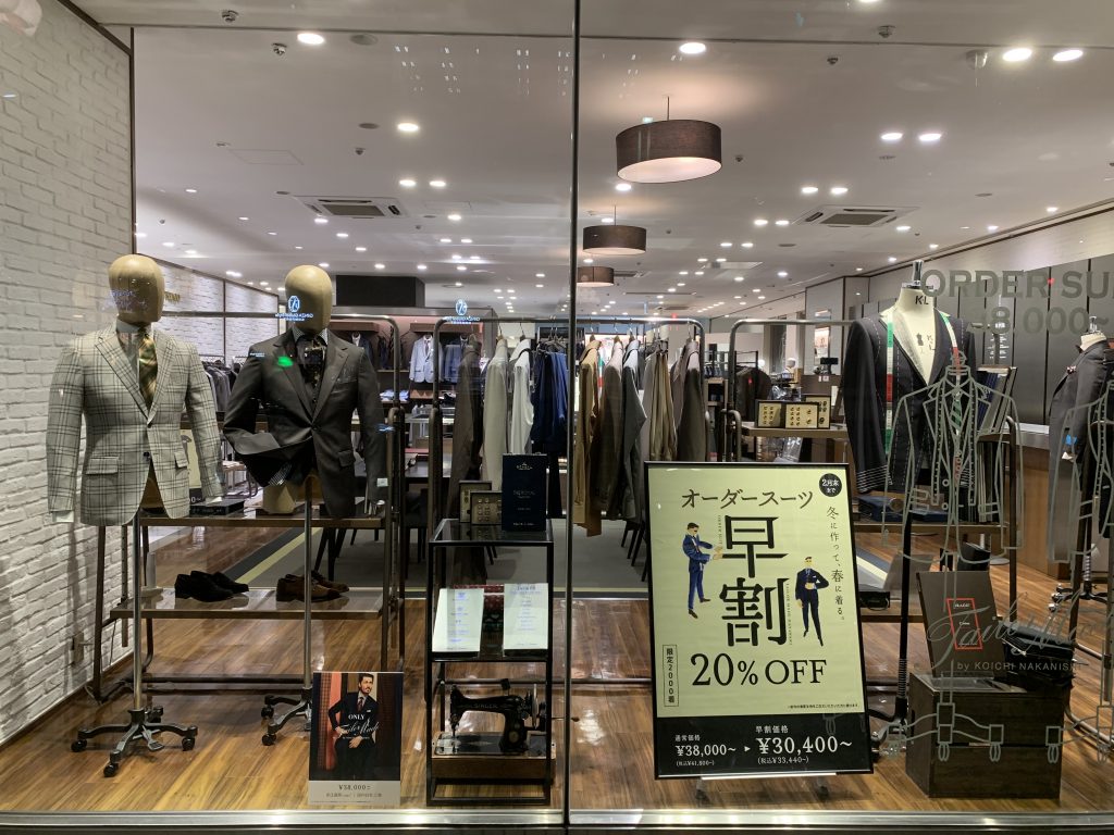 本体価格から20%OFFでお値打ちにオーダースーツをお買い求め頂けます。ぜひご利用くださいませ。