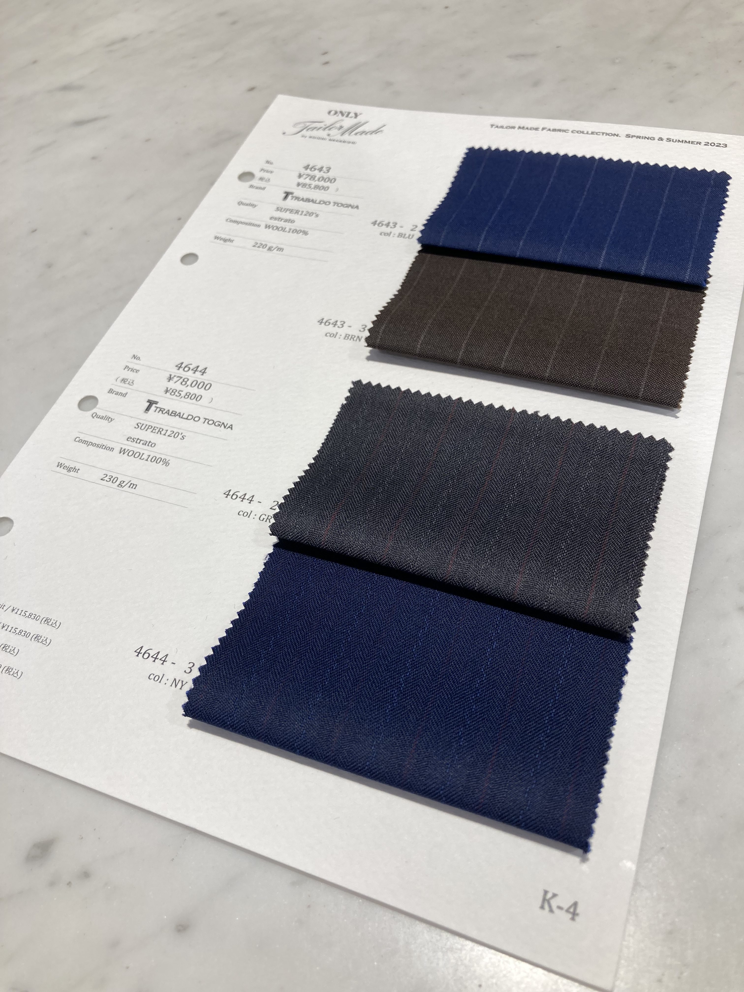 下段2色はストライプとヘリンボン柄で構成されるオルタネイトストライプ柄で男らしさが際立つ生地です😇