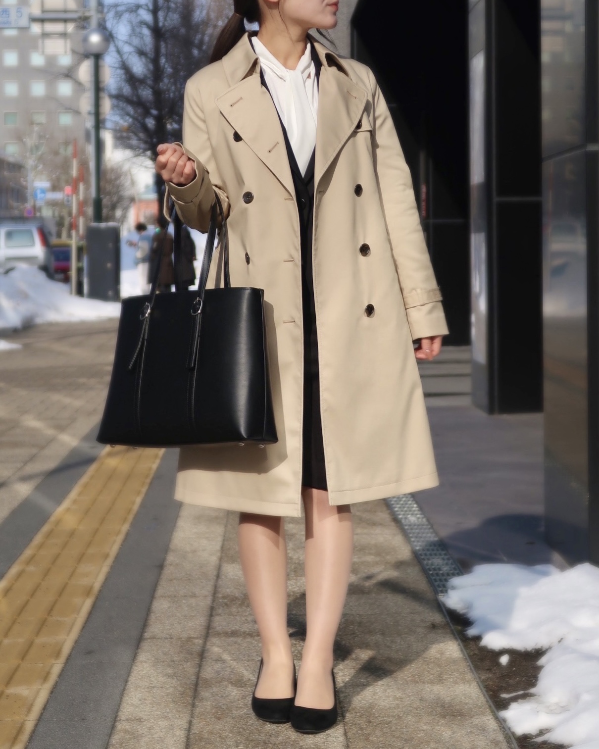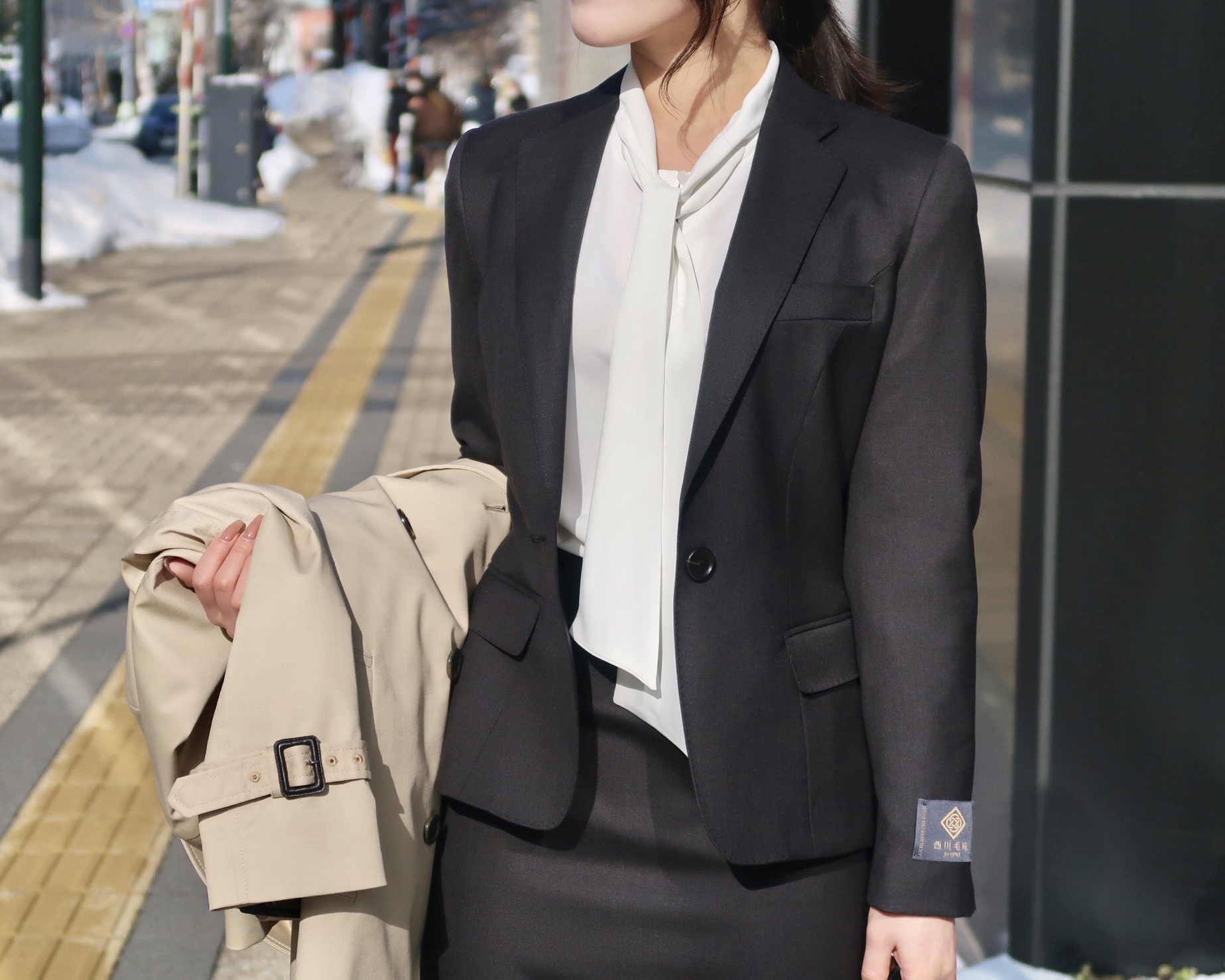 定番トレンチコートを合わせた入学式~就活や新社会人としてのフレッシャーズスーツとしても