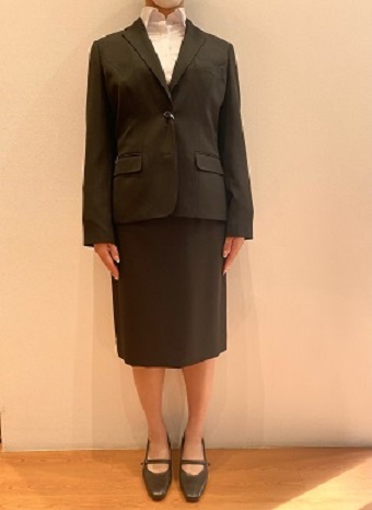 女性の場合、ジャケットは肩が落ちないようにジャストフィットのもの。
