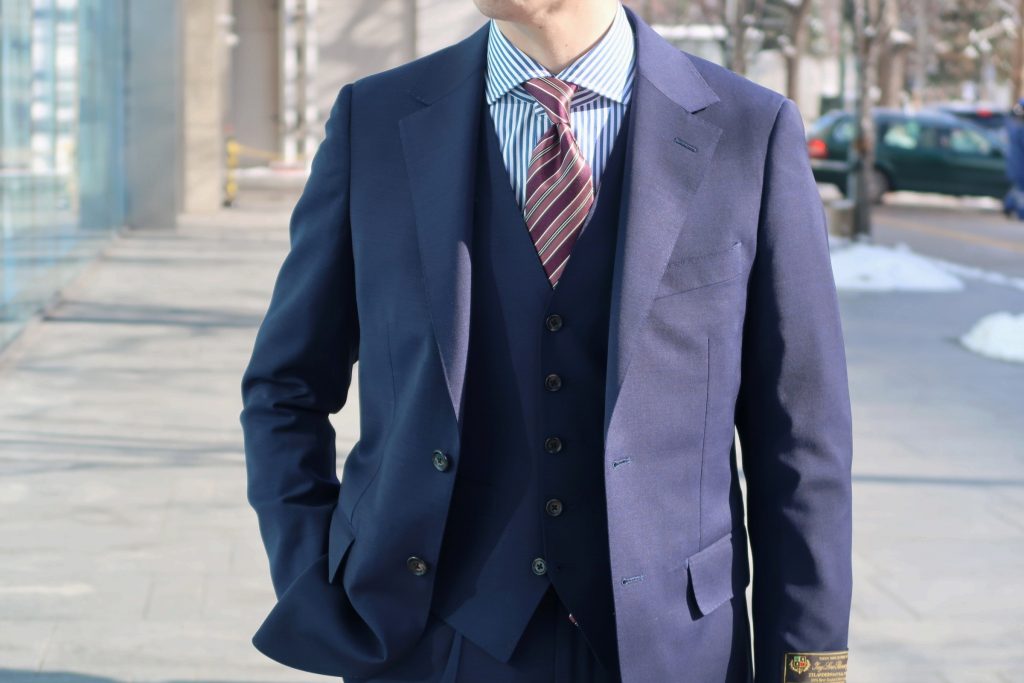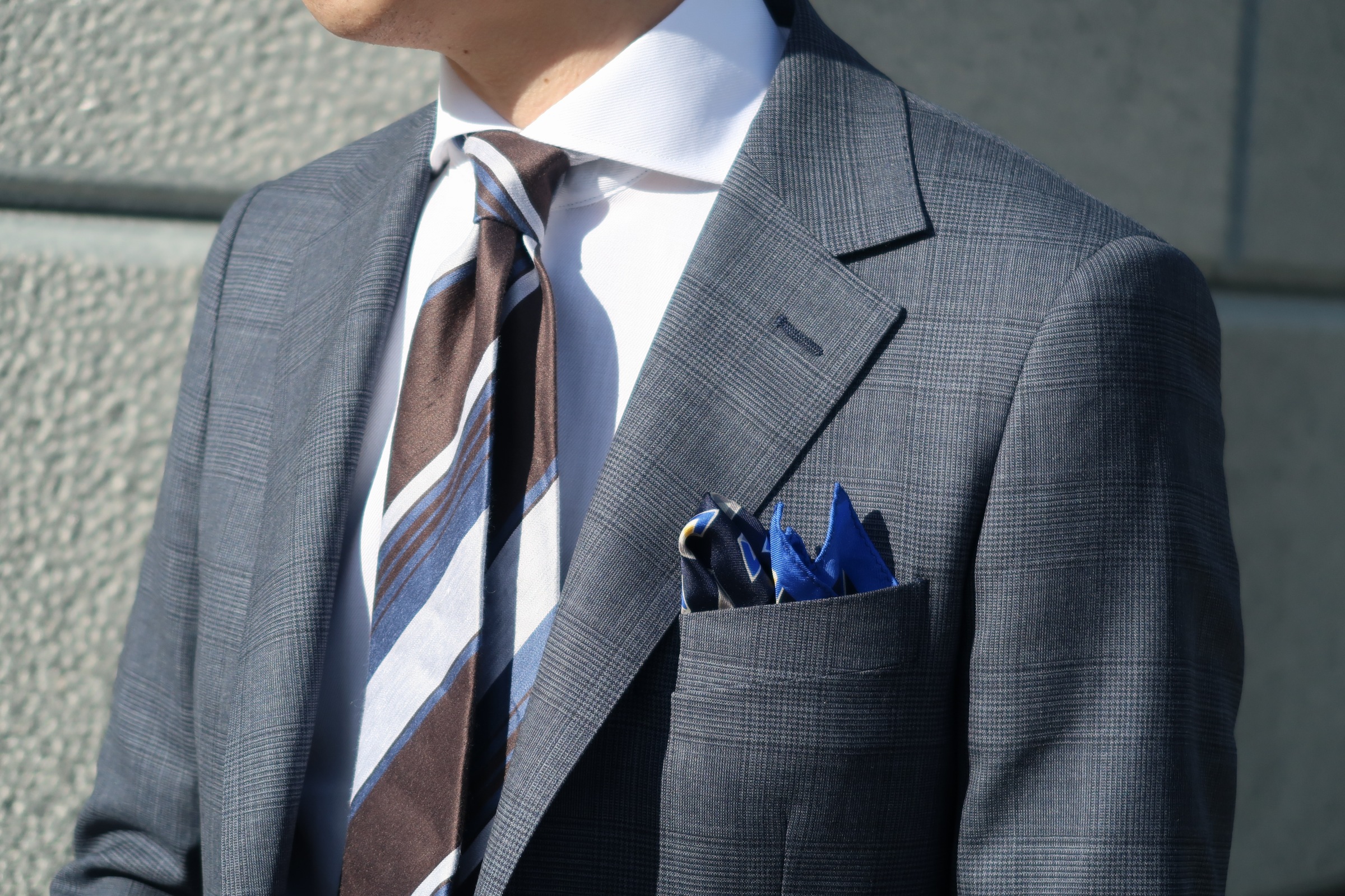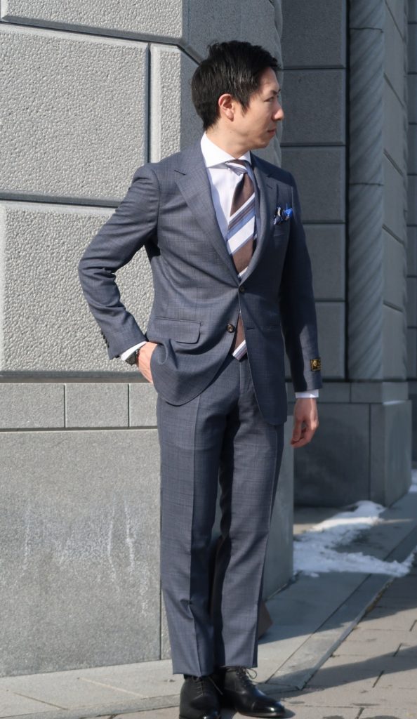ブリティッシュなスーツらしいカッコ良さとフレンチの雰囲気漂うフィッシュマウスラペルを融合させた