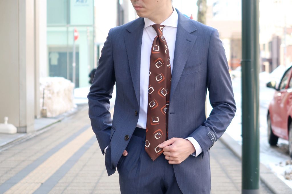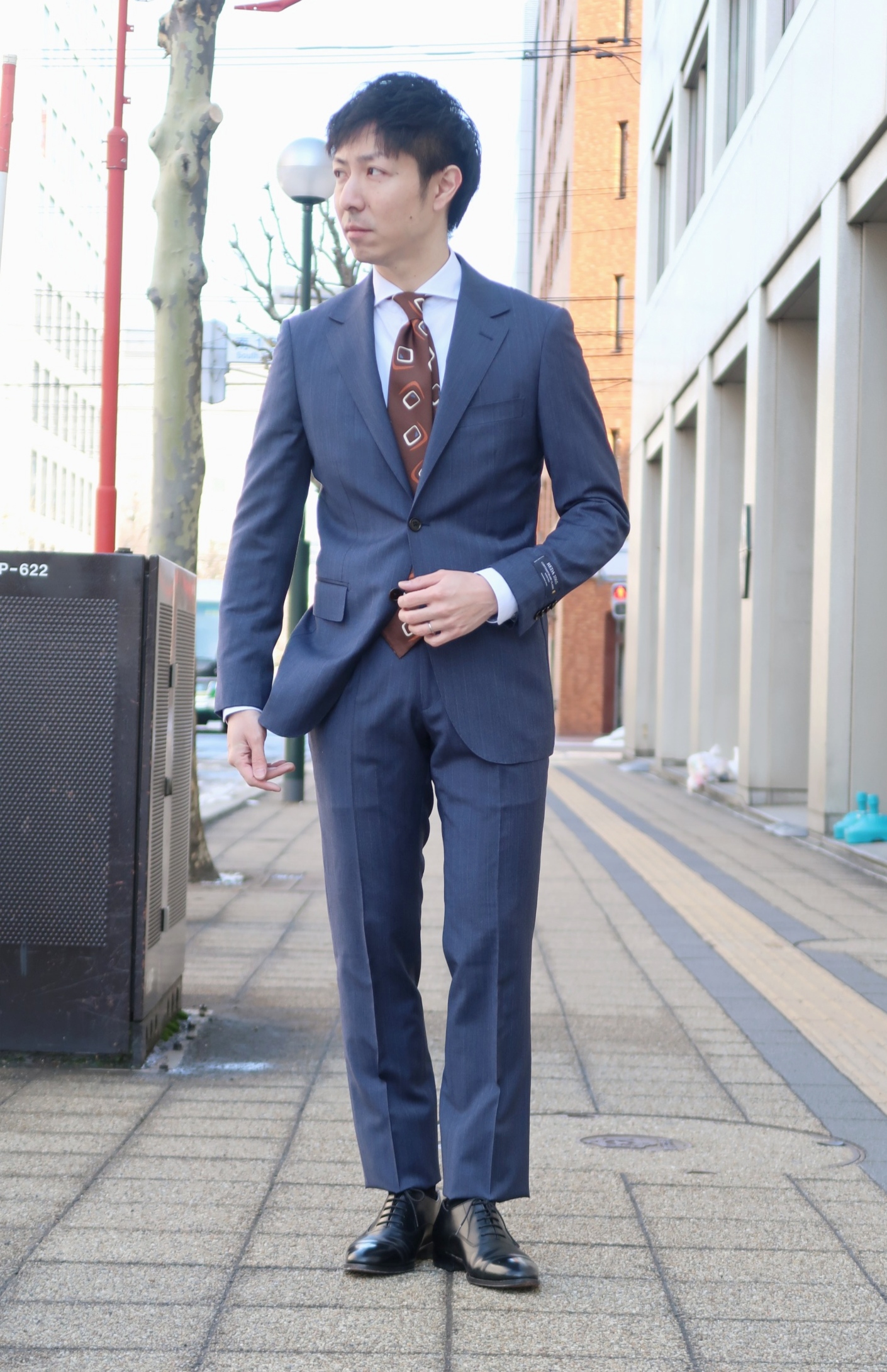 淡いブルーのスーツでも良く映えるブラウンタイで清潔感にお洒落さをプラス✨