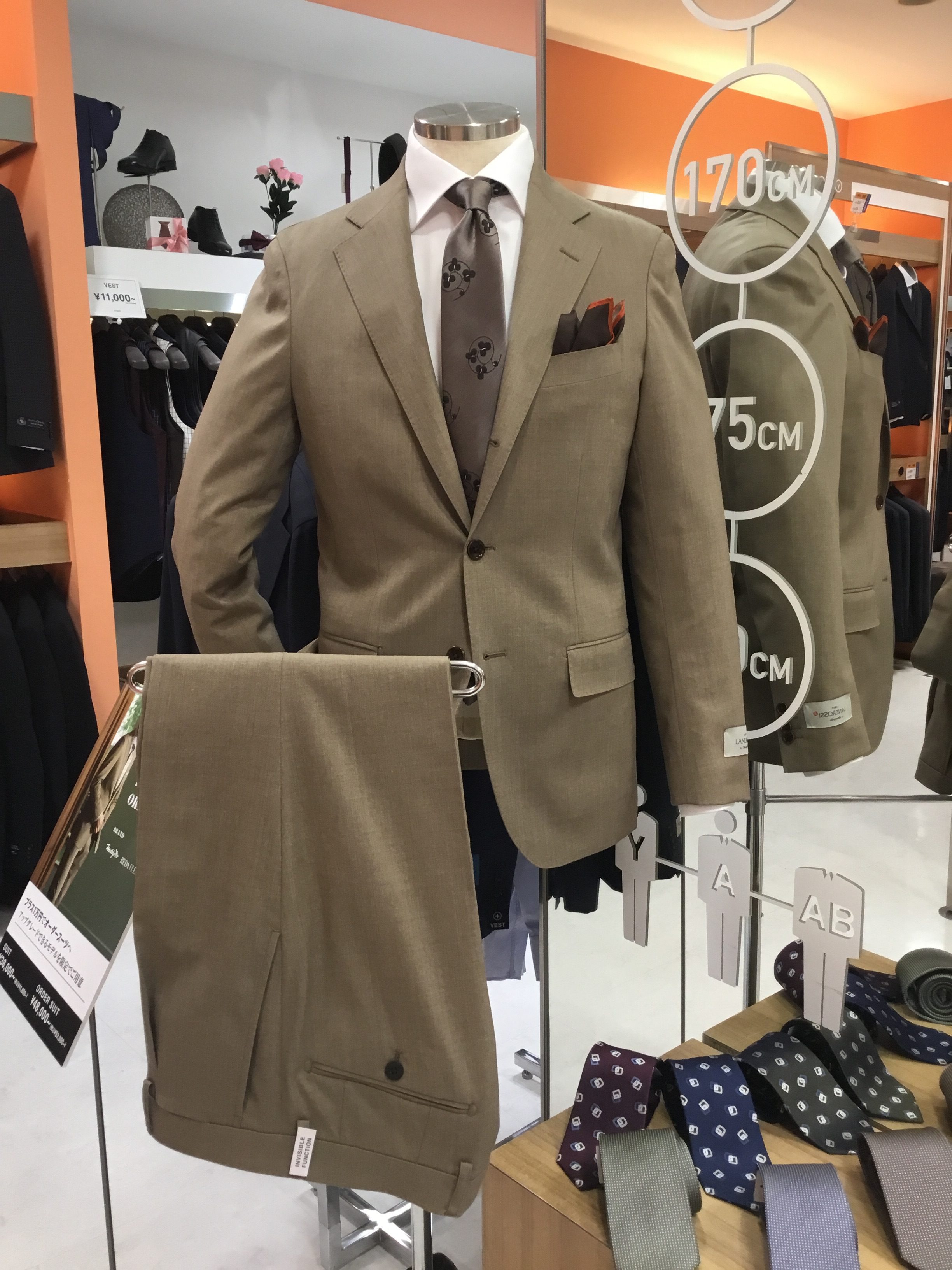 落ち着きのあるベージュなので、初めてベージュスーツを着る方でも着用のしやすい色合い😏