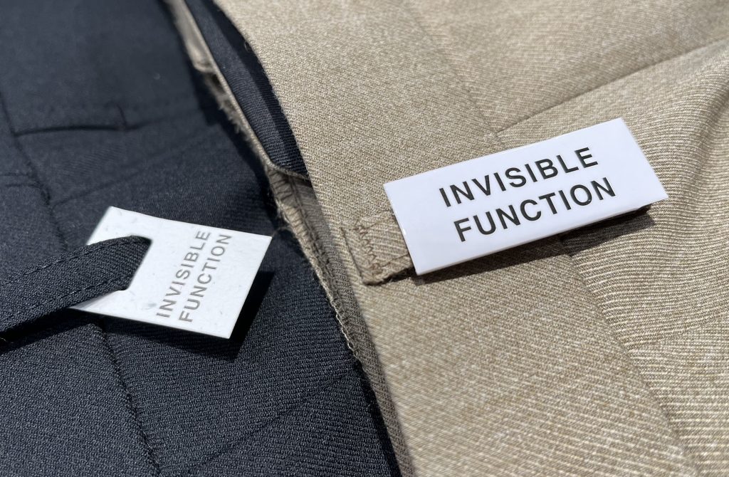 インビジブルファンクションは、今までも既製品のトラベラーシリーズのスーツやパンツに使われていた機能です。