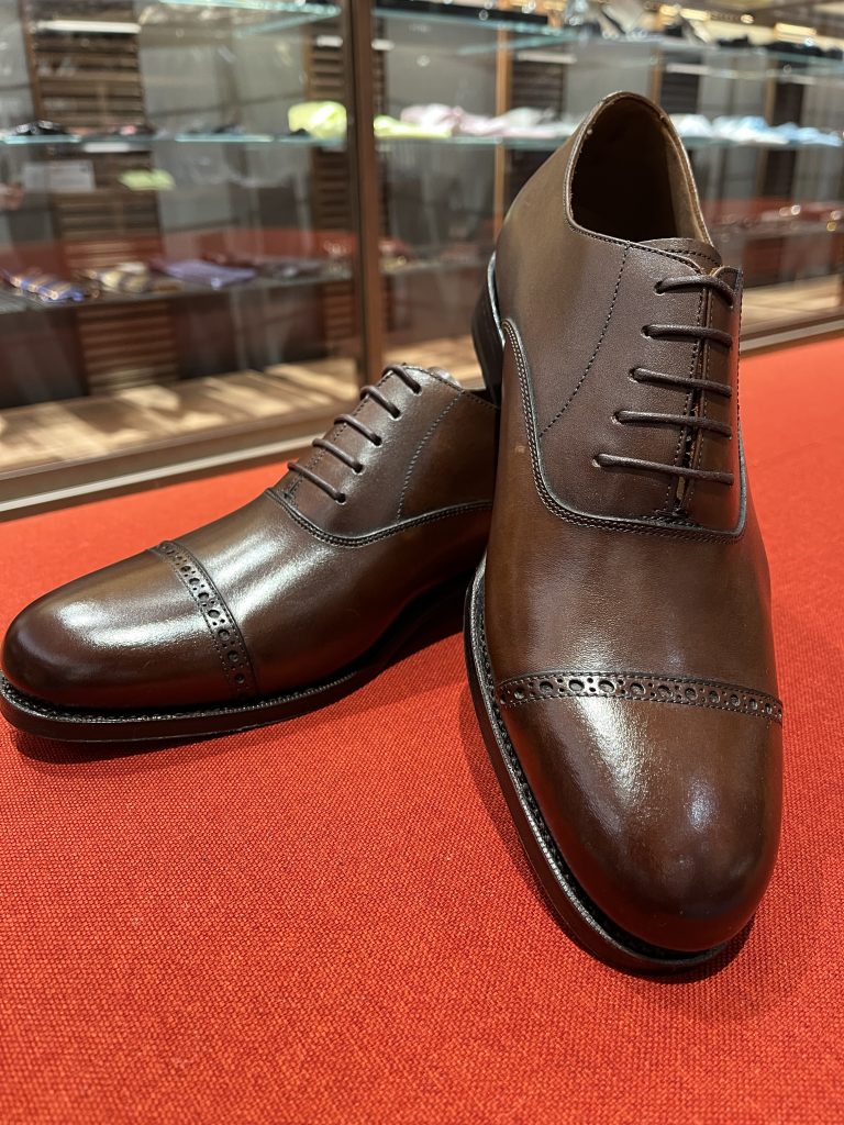 こちらのデザインは王道のパンチドキャップトゥで、スーツだけではなくジャケットスタイルにもおすすめ。