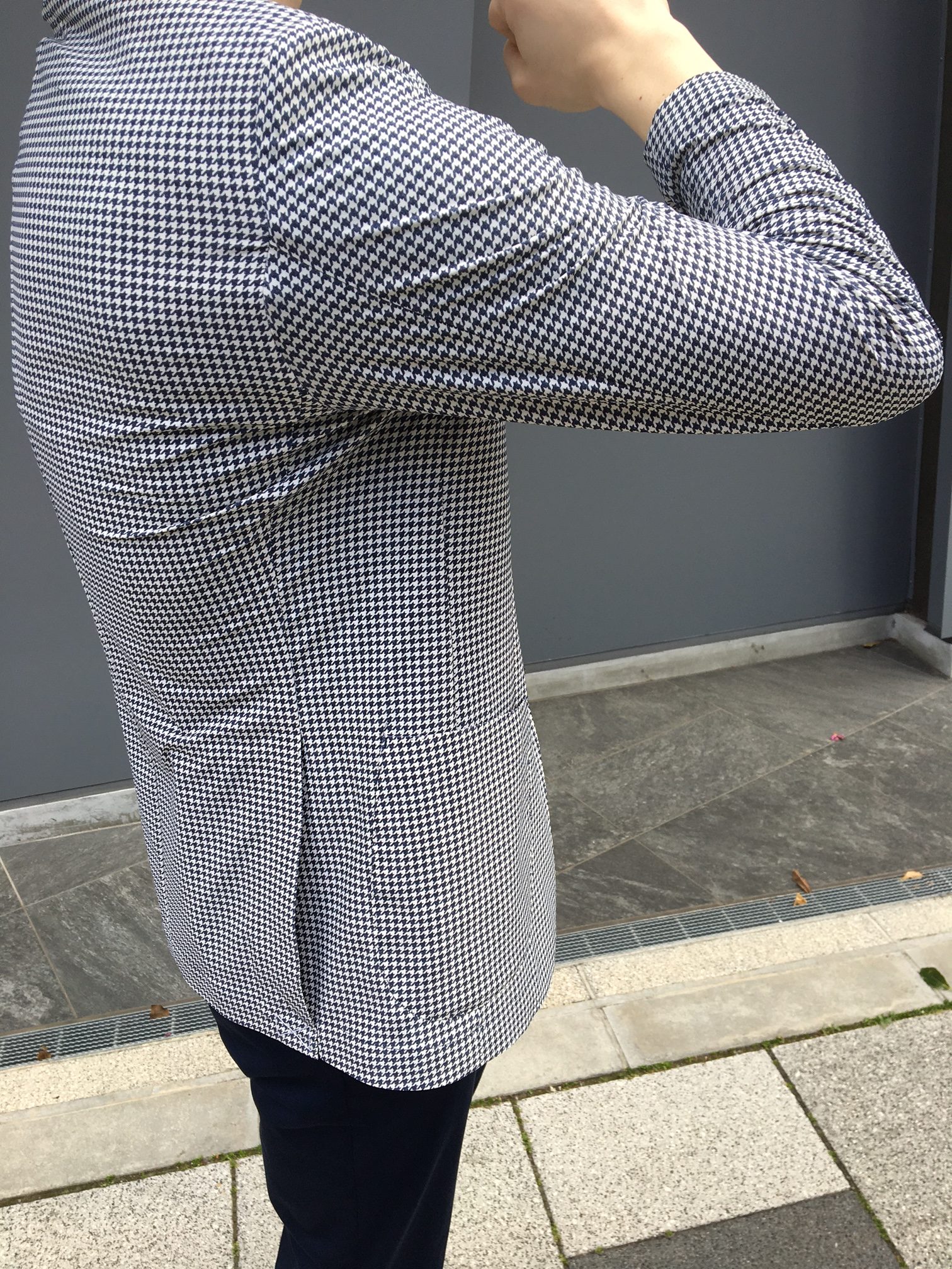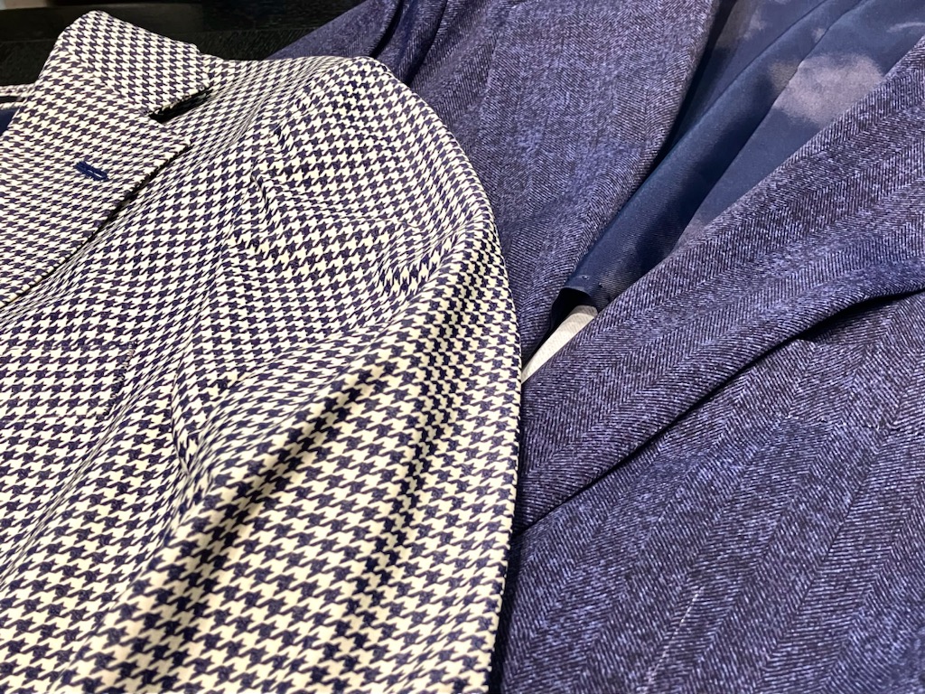 ジャケットの柄は千鳥柄とデニム調のインディゴネイビーの2種展開!