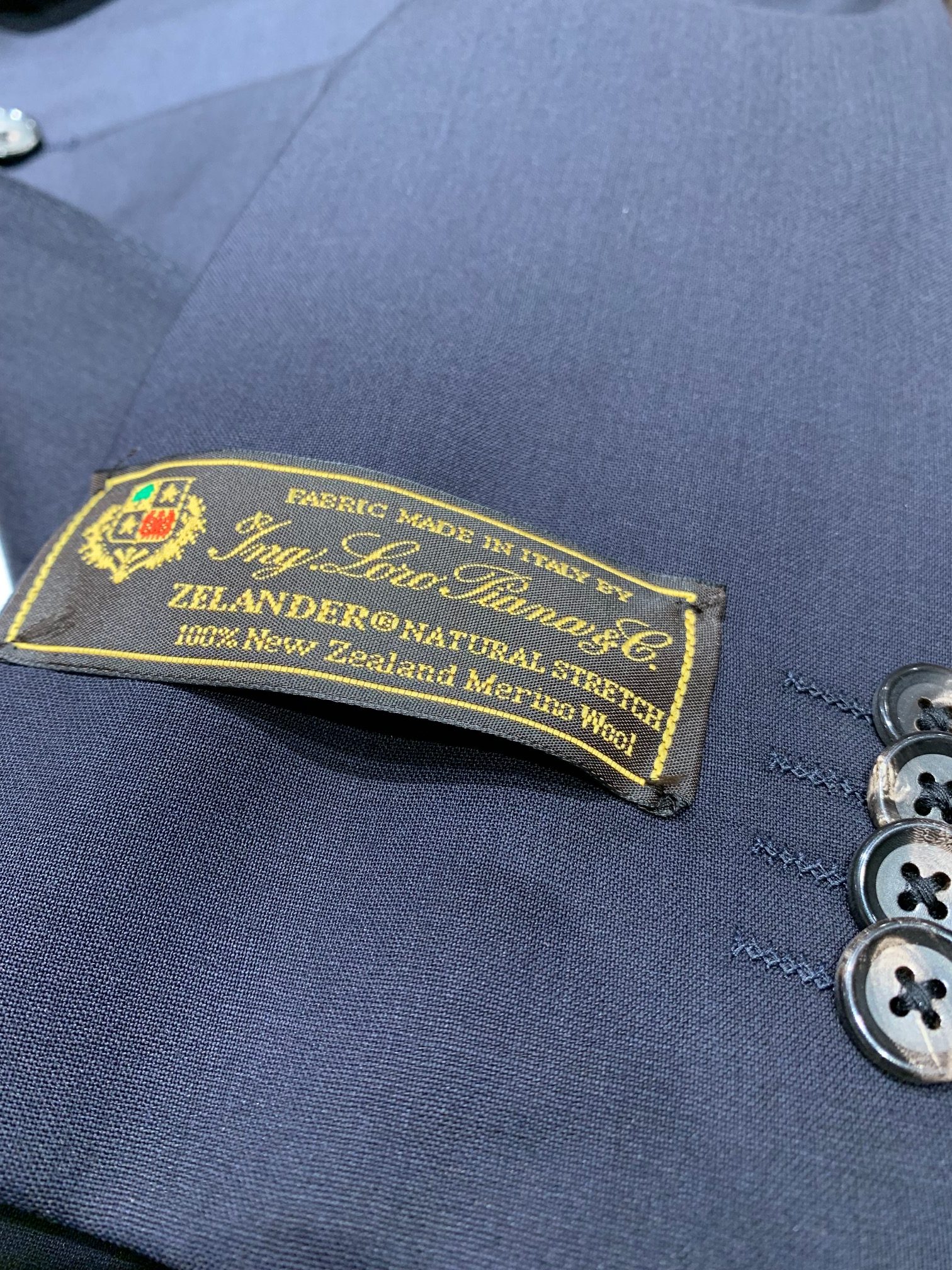 上質メリノウールならではの上品な艶と深いネイビーも相まって、