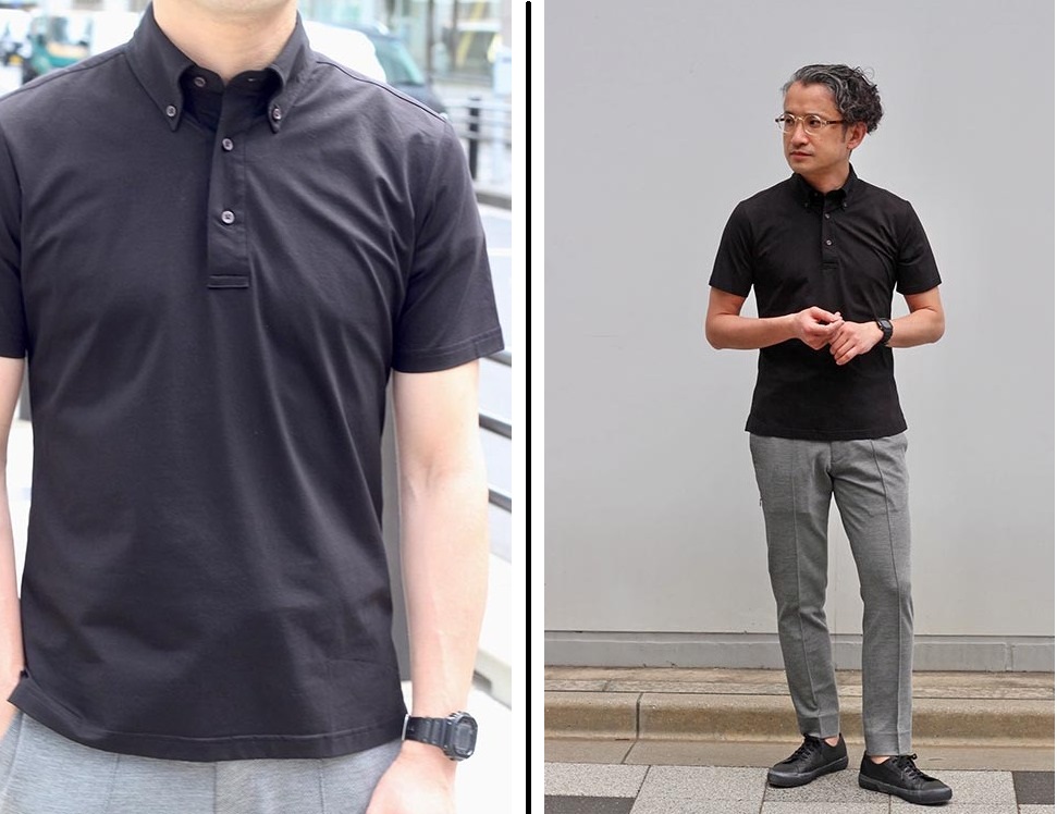モノトーンで纏めたシックな夏の軽装は、サイズ感に気を付けると デキる男に変貌します。ポロシャツは、ウエスト部分がシャープなデザイン のためスタイリッシュに決まり、高ストレッチの”ONLY GREEN”パンツは、ややタイトなシルエットでも心地よく、ノンストレスに着用して いただけます。
