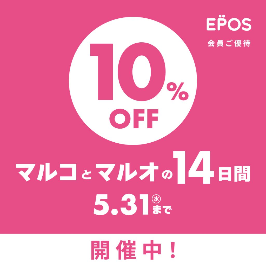 5/18(木)~5/31(水)の期間中エポスカードのご利用で10%OFF!!