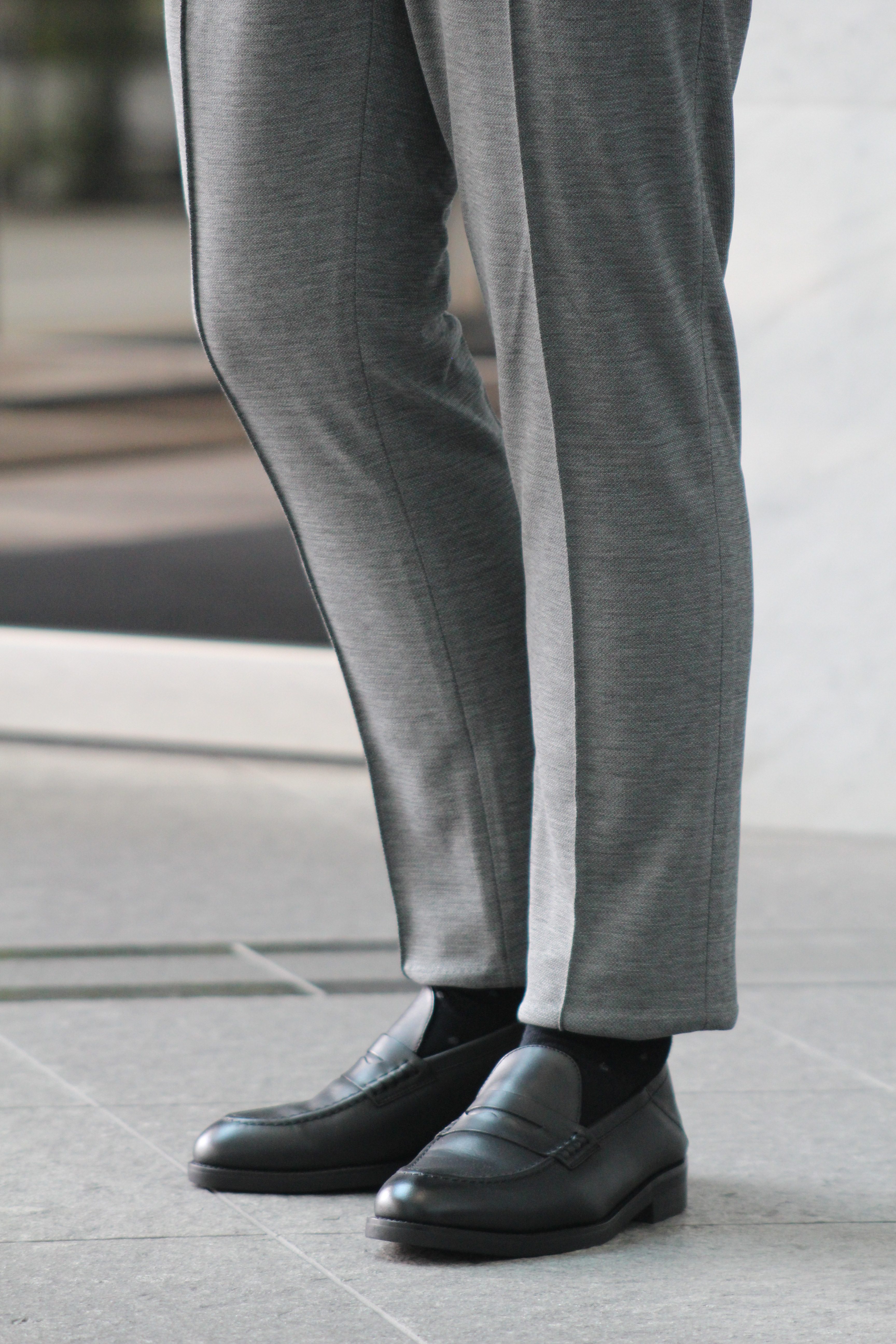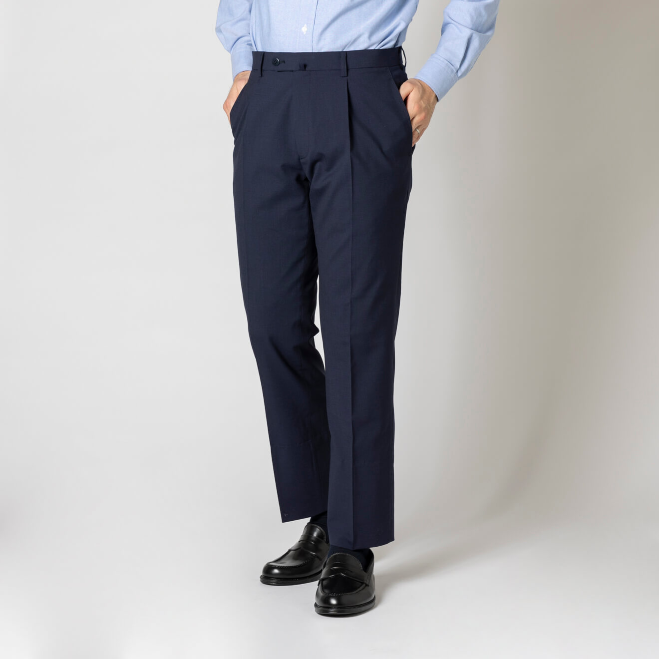 ウールポリエステル生地でシワになりにくく、風合いも保たれています。かっちり感もあり、定番派におすすめです。