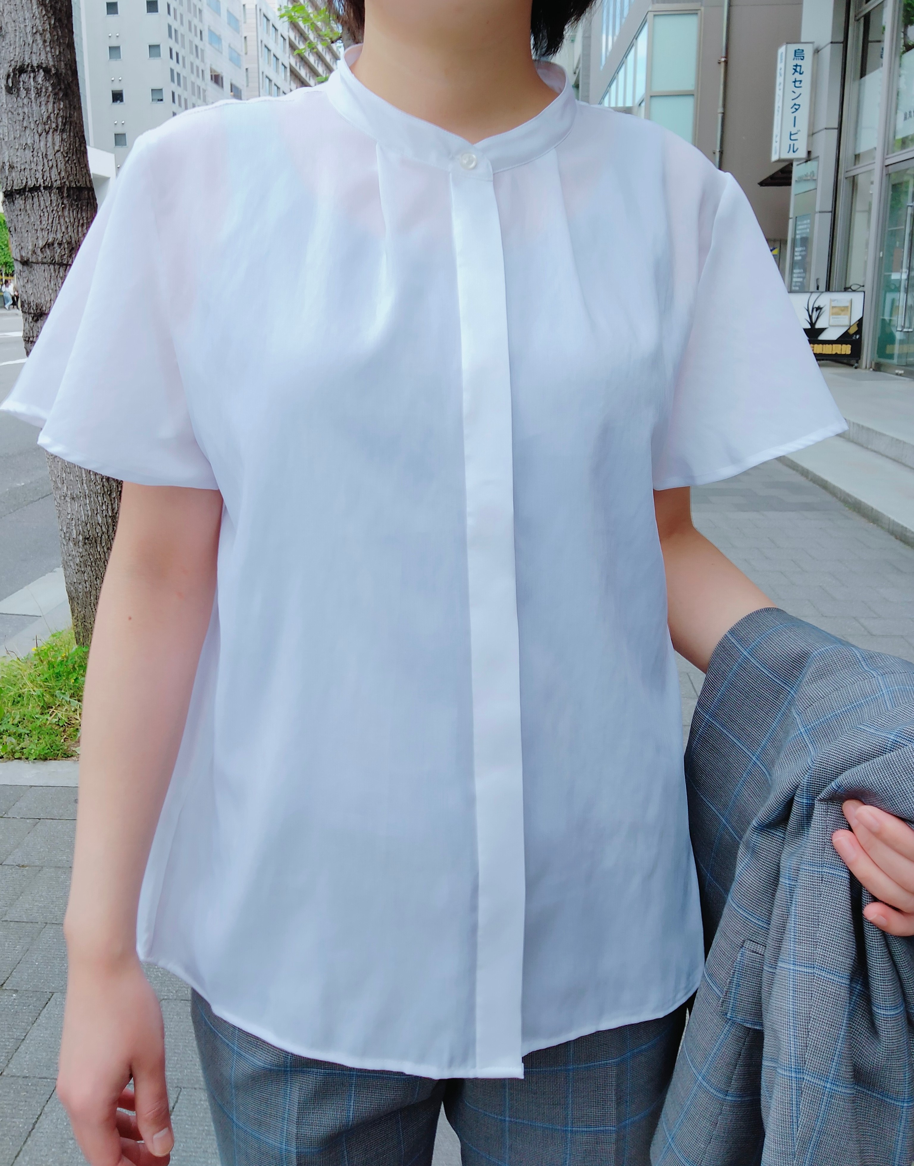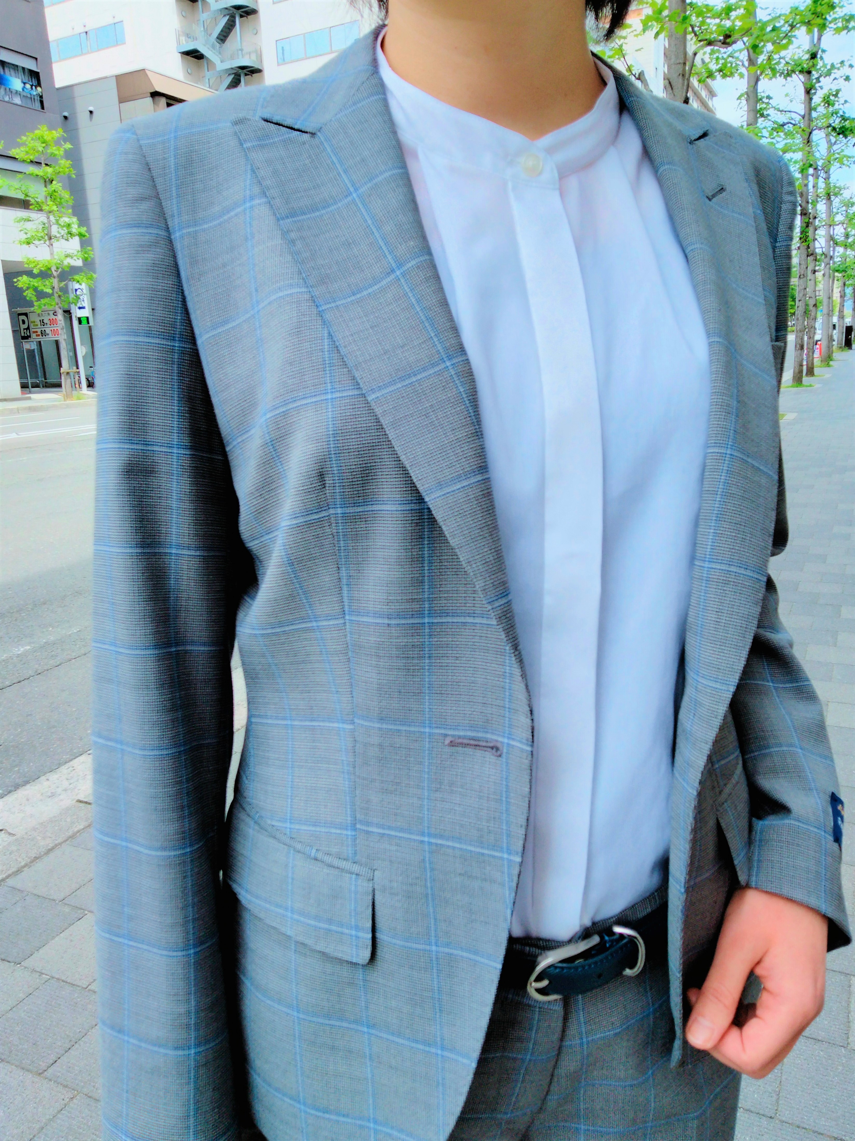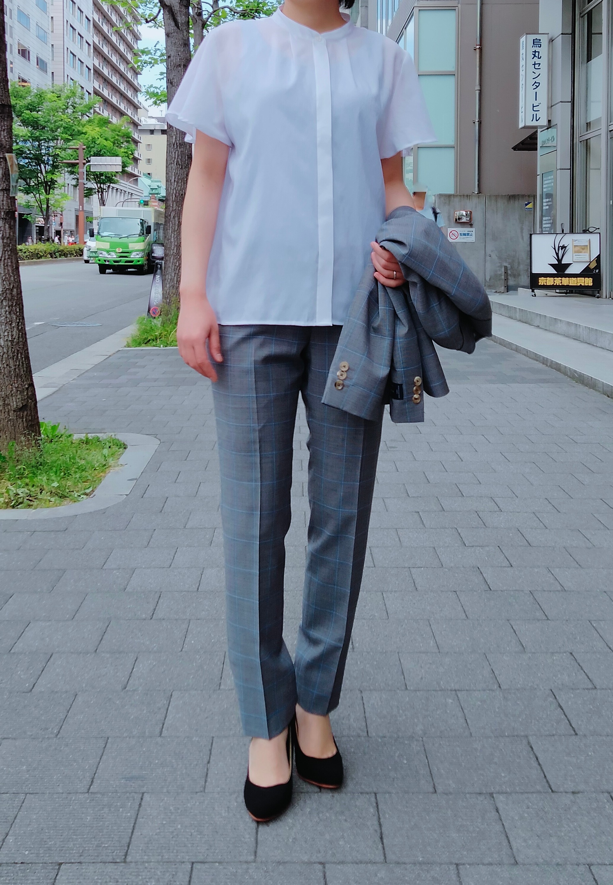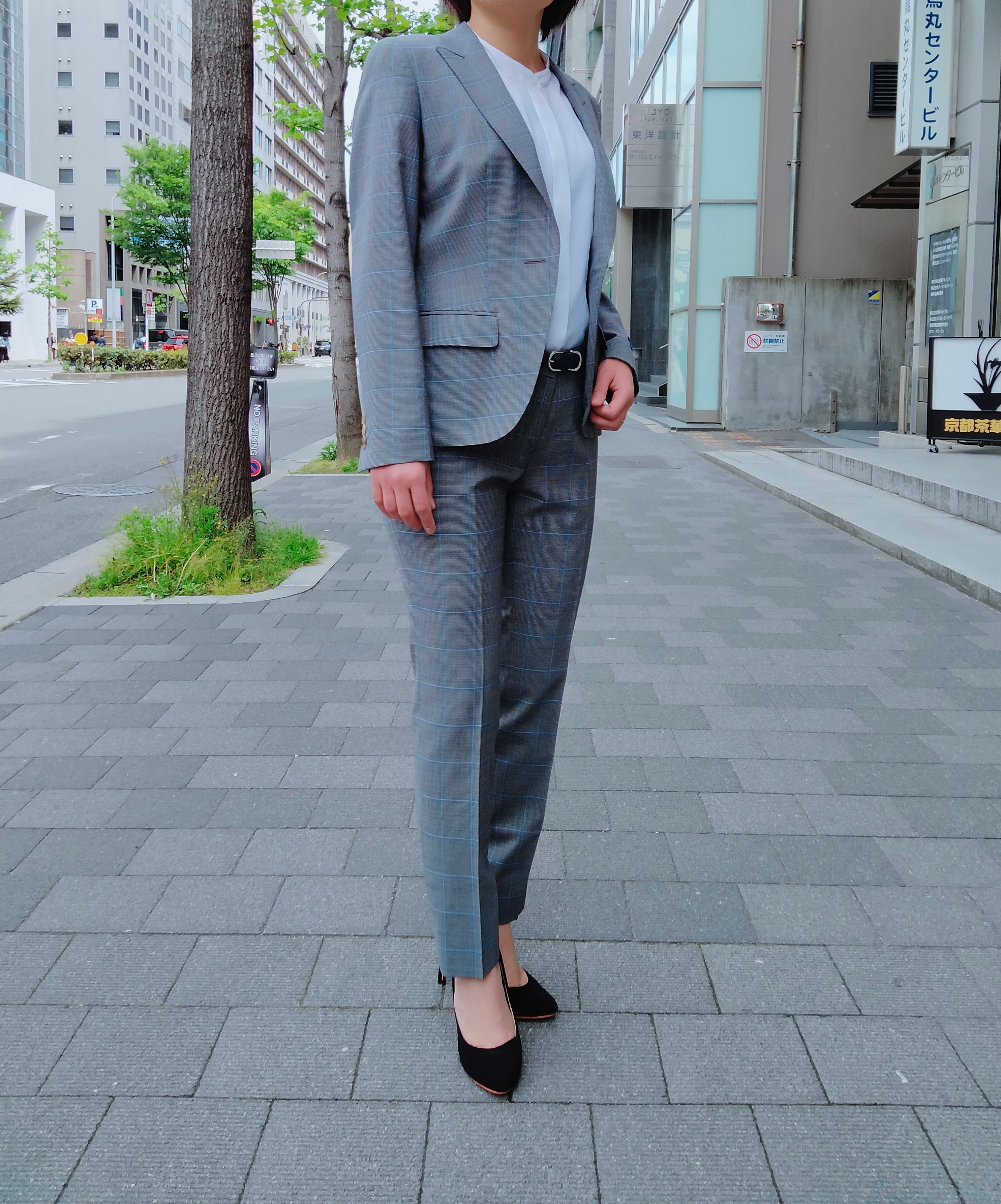明るめグレー✨ウィンドウペンチェックスーツとホワイト半袖カットソーのご紹介 ONLYWOMEN烏丸店