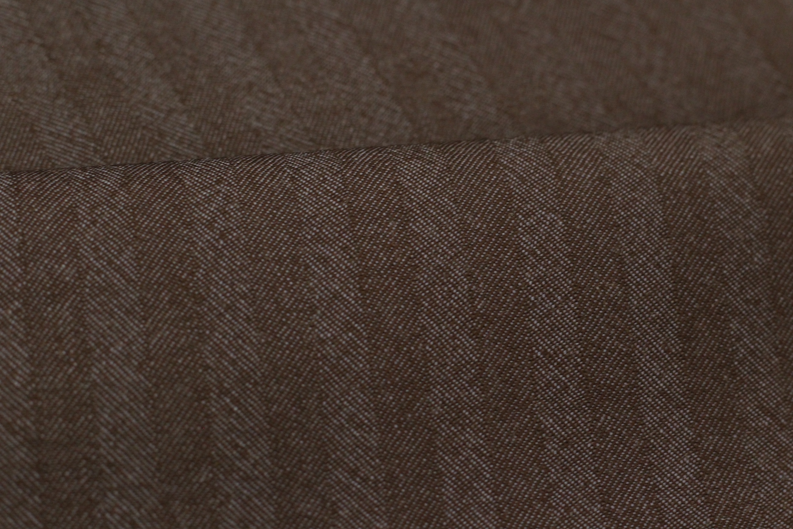 綾織ブラウンのニュアンスカラーが綺麗な生地。後染めのソリッドの見え感は、上品で仕立て映えの良い仕上がりになります。SUPER130’sの原毛をあえて60番双糸の太引きにして、英国生地のようなハリコシを持たせ重厚感のある趣に。ブラウンカラーをお探しの方は、店頭で是非ご確認ください!