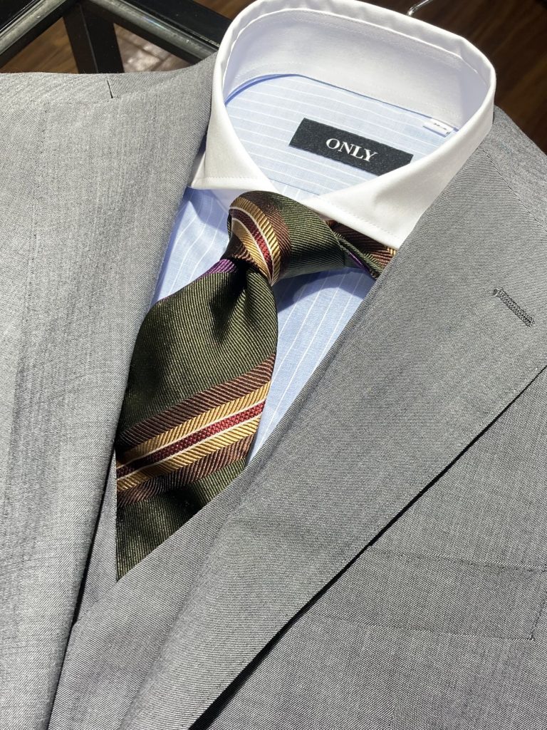 ベースのスーツ素材と同系色ゆえ、カラーコーディネートがしやすく、