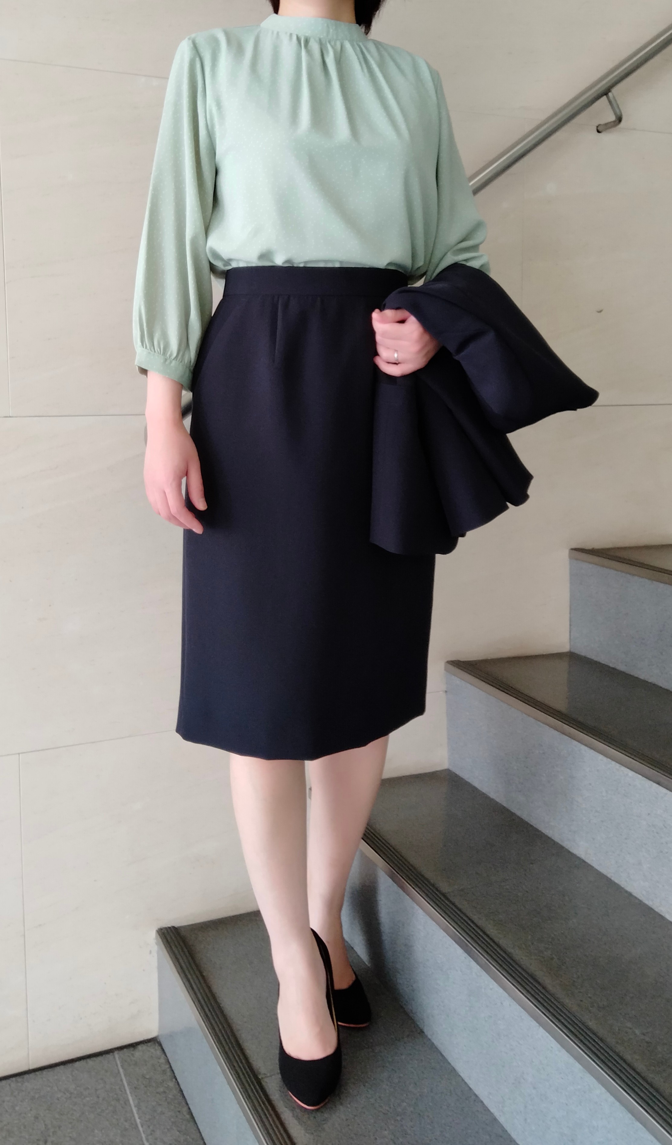 今回は細かいドット柄のカットソーを合わせました(^_^)/