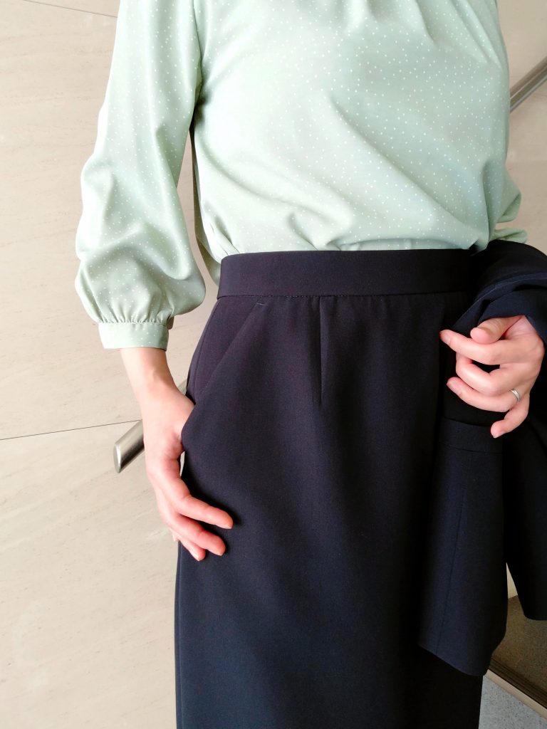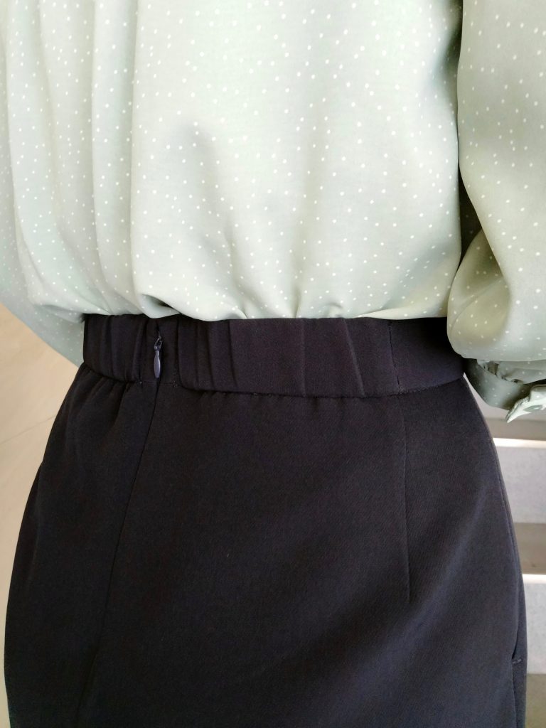 ウエストは見えないバック部分のみウエストゴムで、履き心地は◎