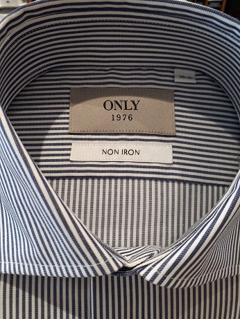 NON IRON仕様です。襟の内側のタグが目印です。