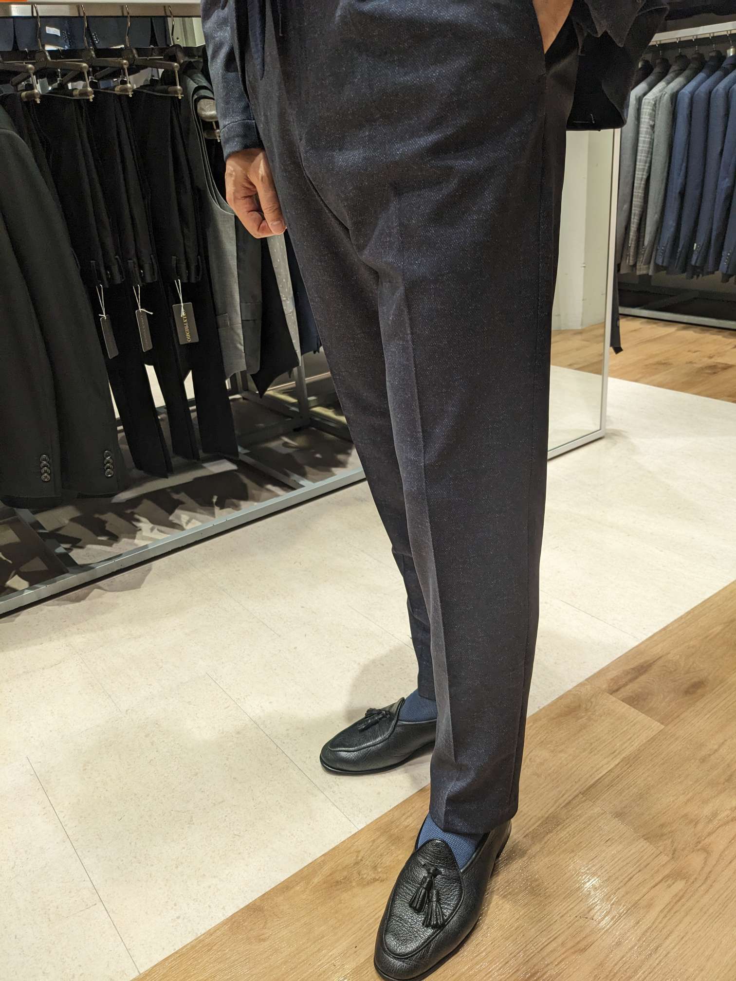 センタークリースもしっかりキープしパンツラインもドレッシーに。