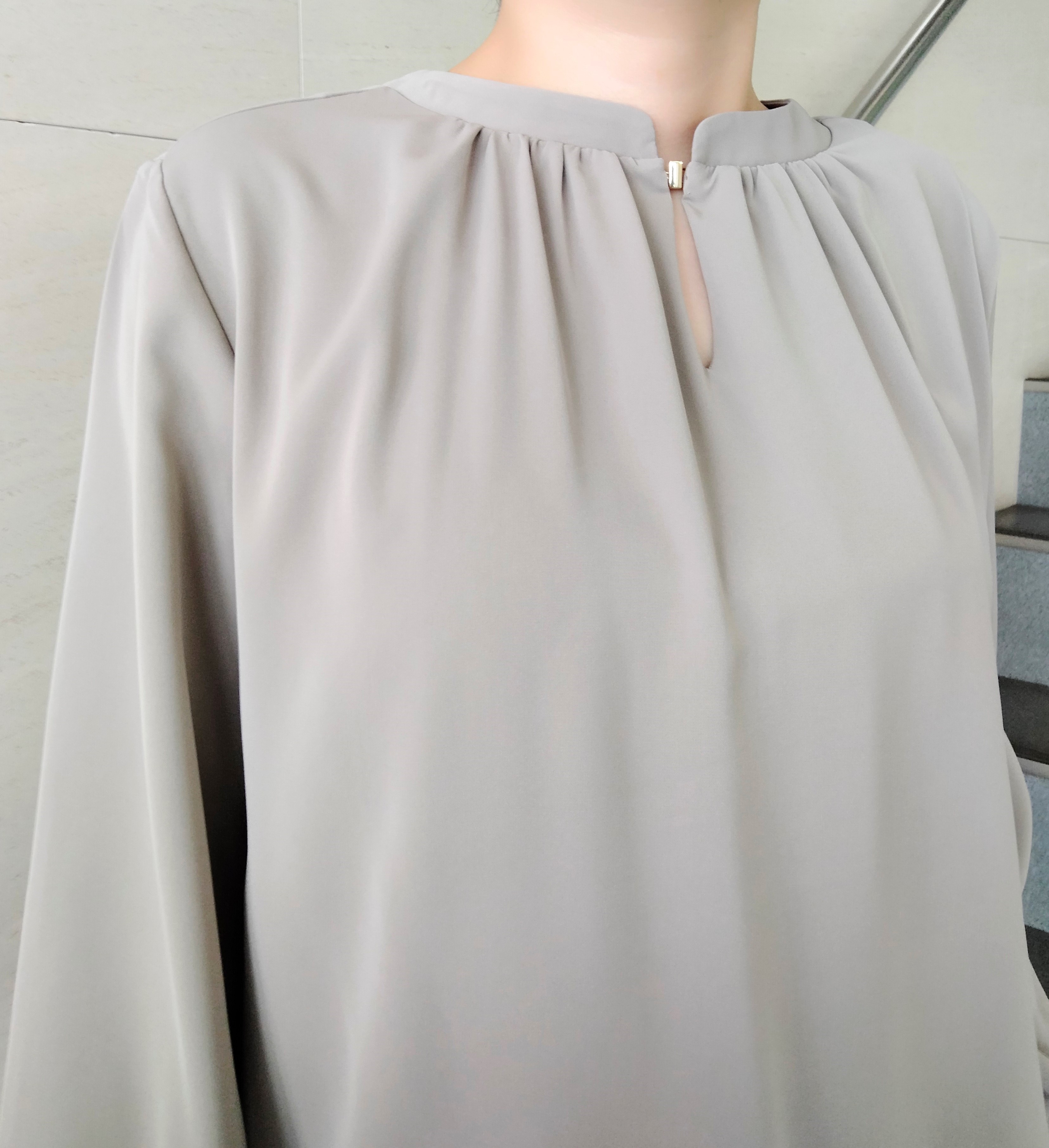 装飾のホックがアクセントのベージュブラウス(*^▽^*)