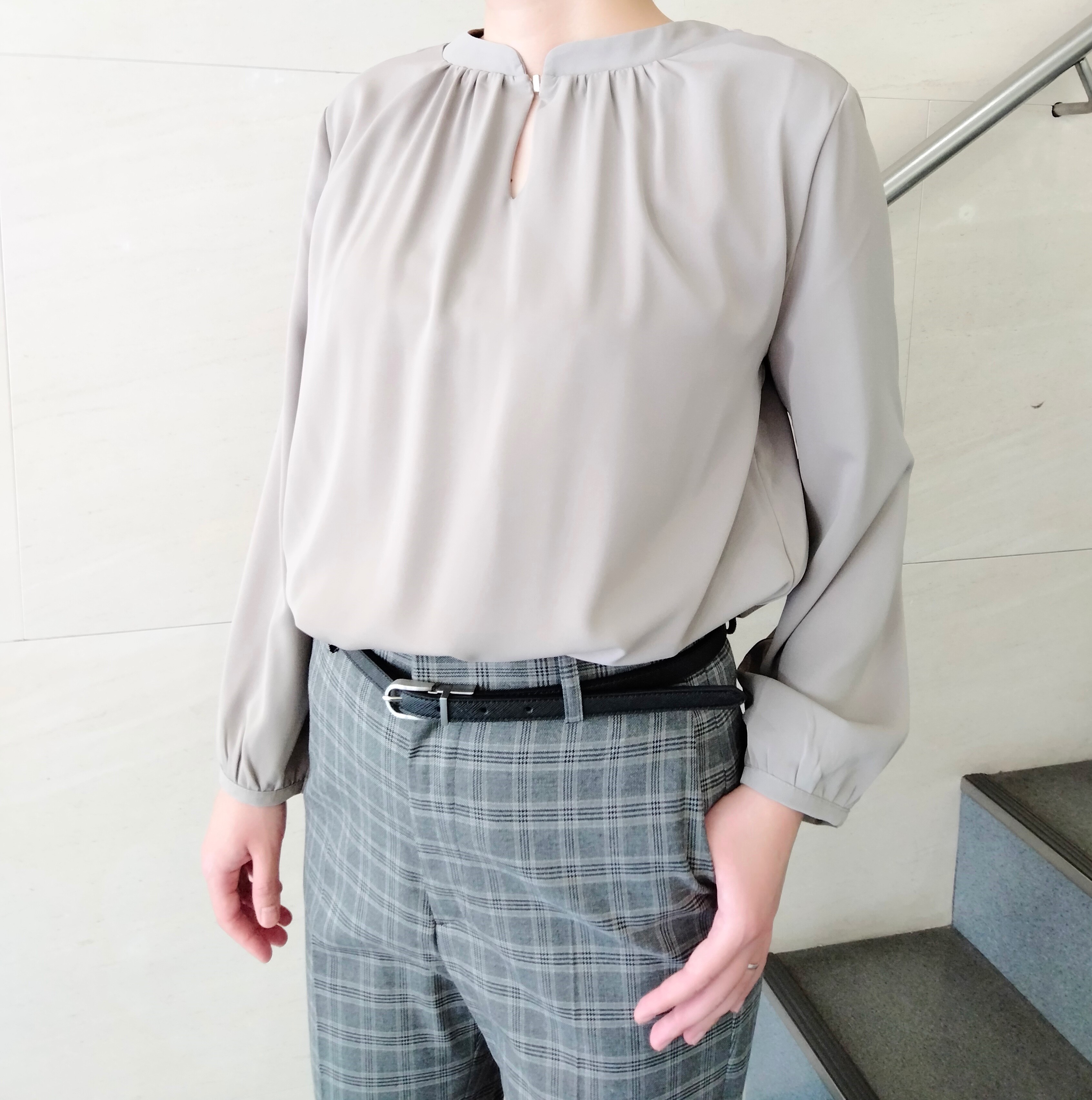 くすみ感がかわいいベージュブラウス。