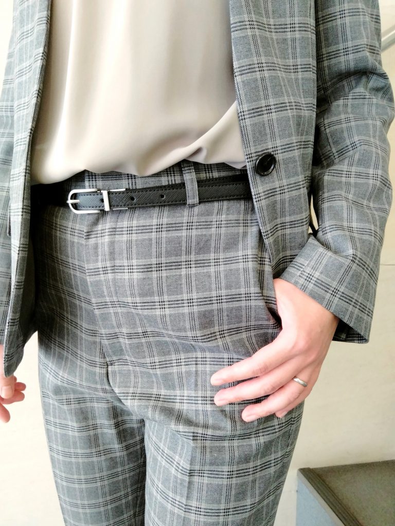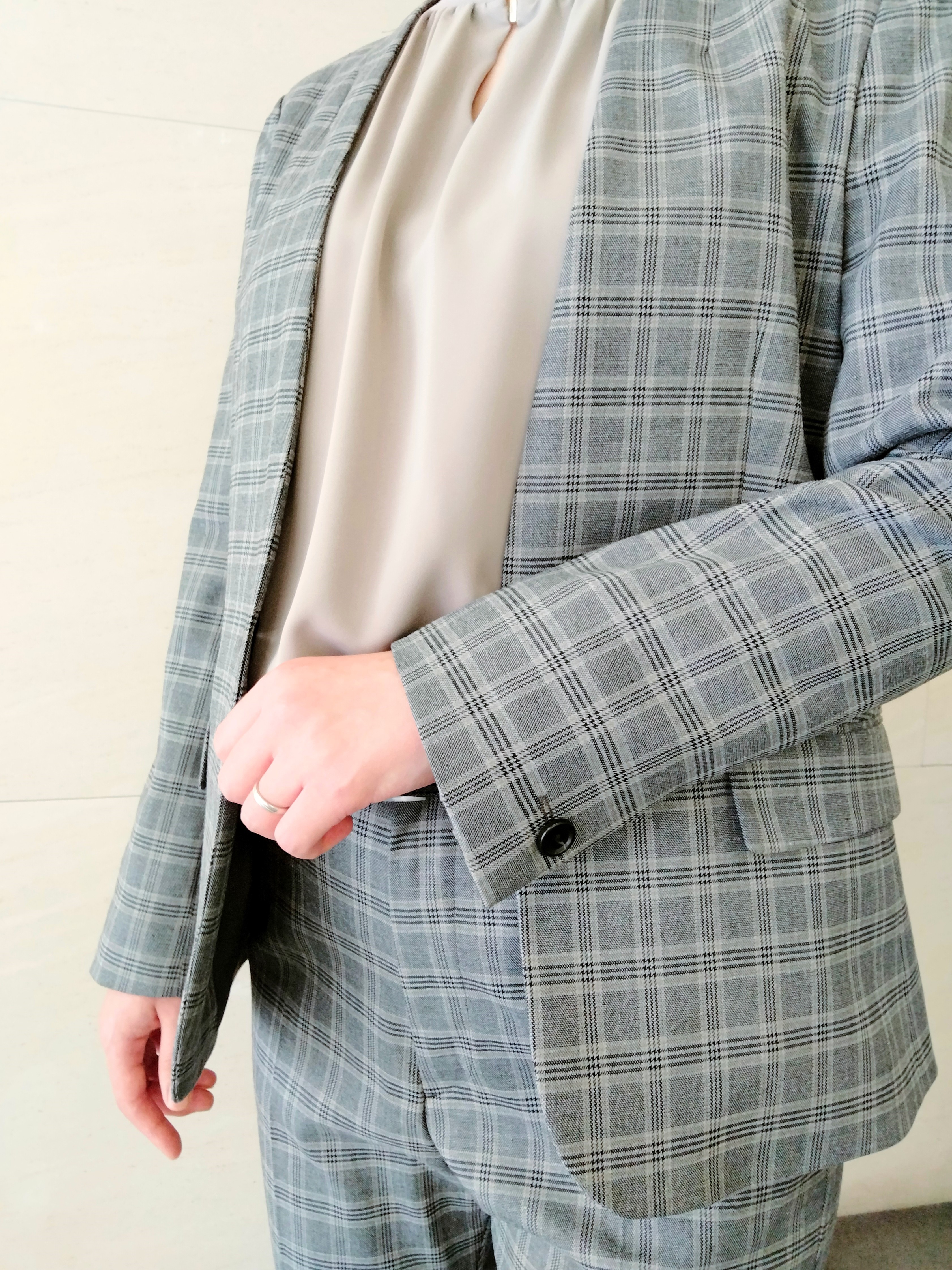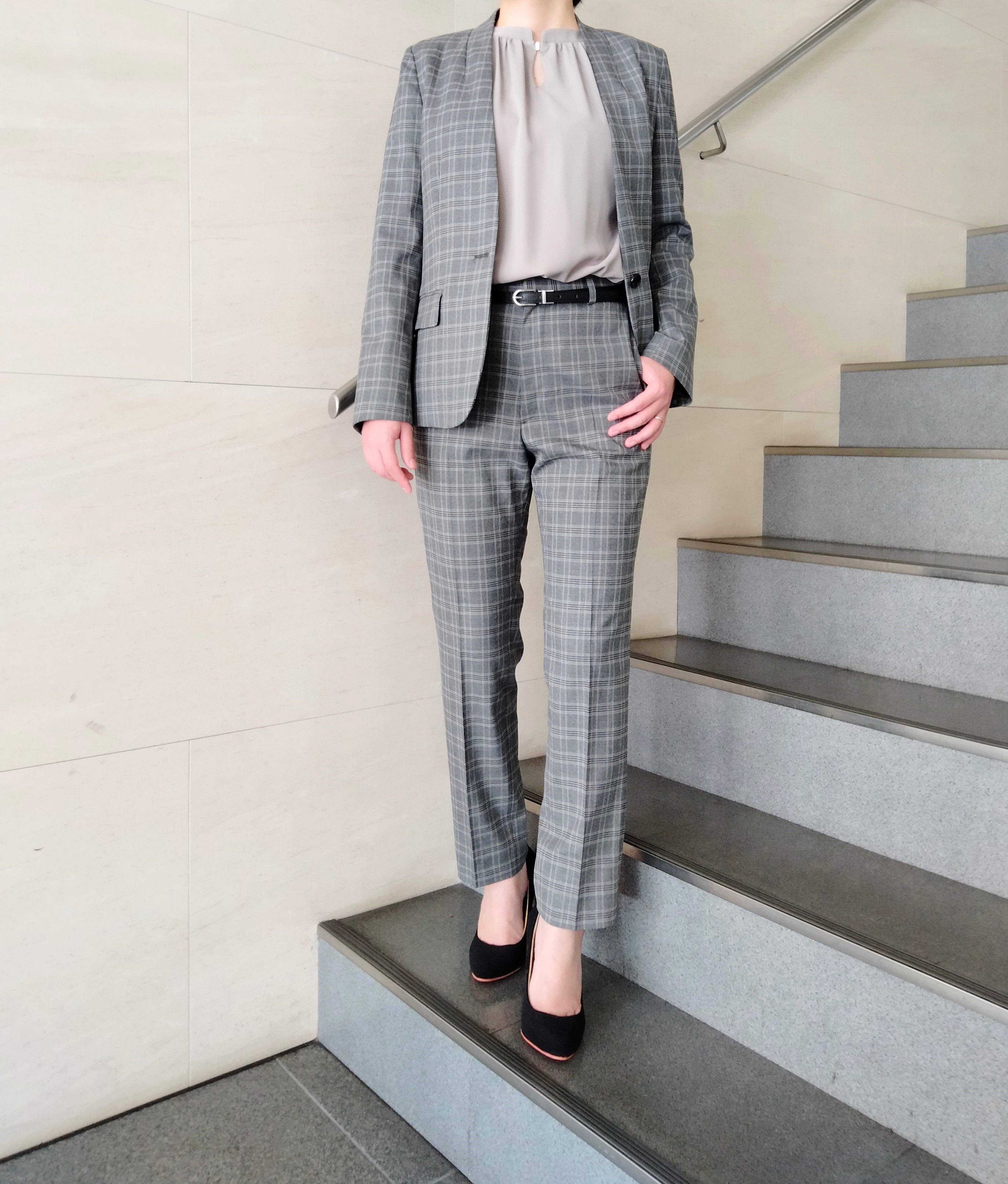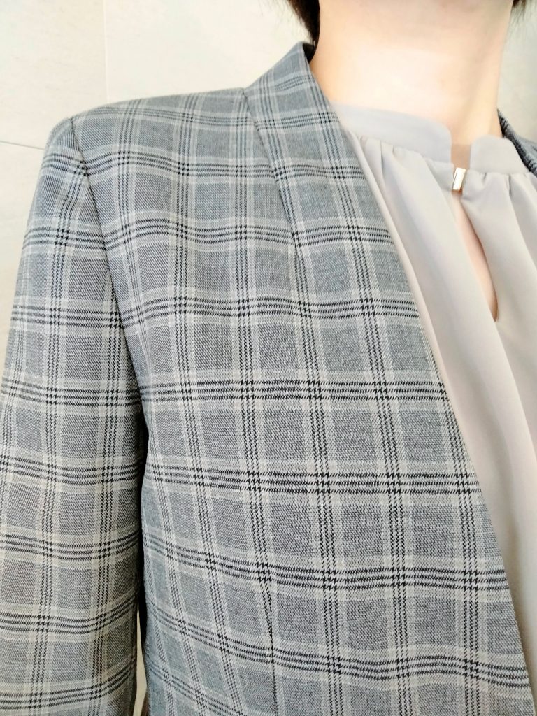 ノーカラーグレーチェックスーツのご紹介 ONLYWOMEN烏丸店