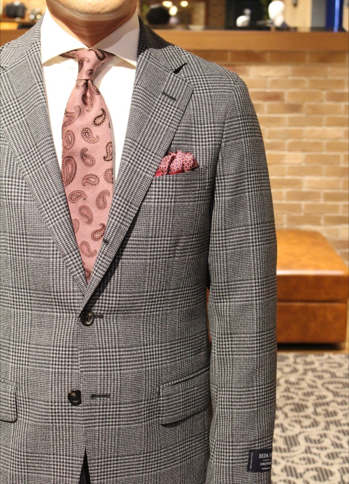 ①REDA グレーグレンチェックスーツ