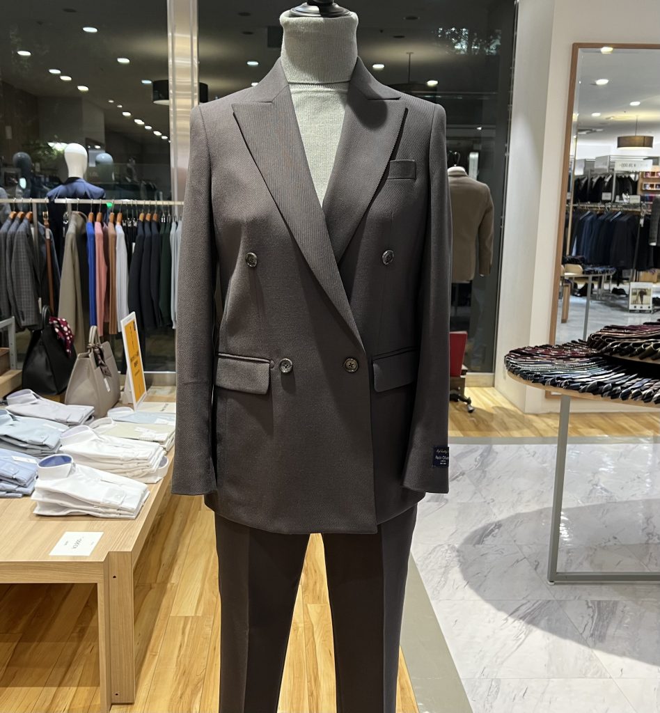 メンズの6つ釦ダブルブレスト仕様は春夏シーズンと同じですね。