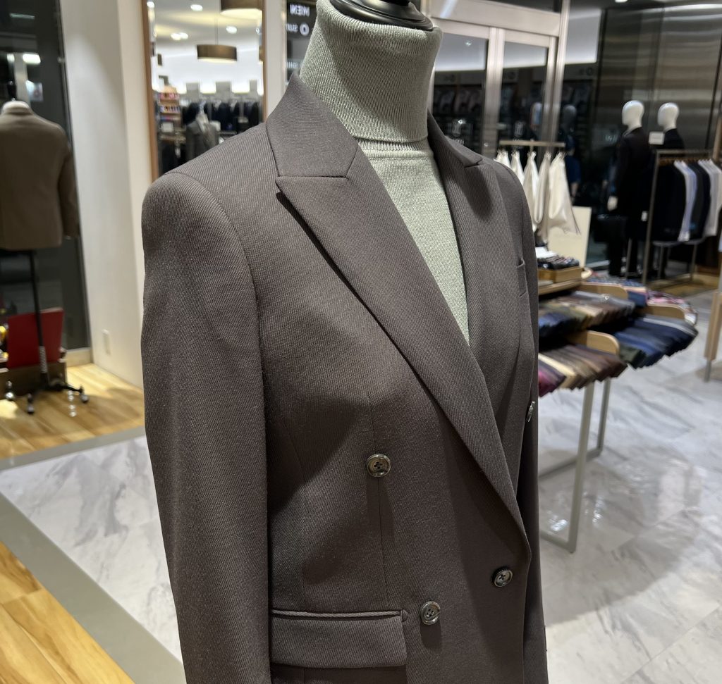今季より初登場の4つ釦ダブルブレスト仕様のジャケットになります。