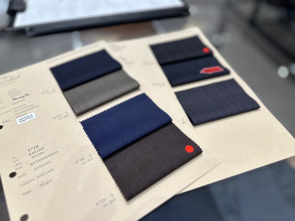 今季は一歩踏み込み原材料である良質な原毛に着目し、伊ロロピアーナ社やゼニア社も