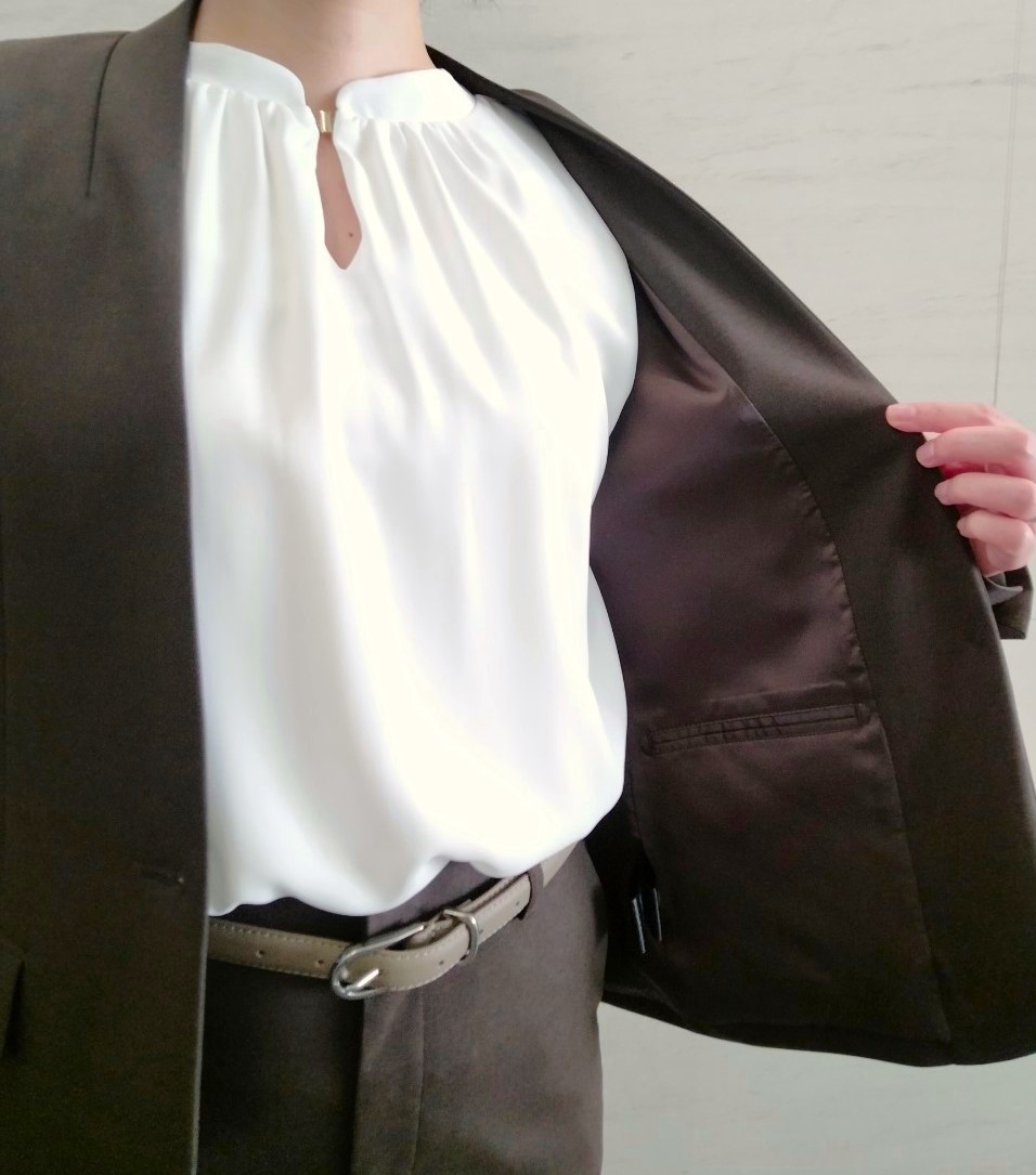 ノーカラーブラウンスーツのご紹介 ONLYWOMEN烏丸店