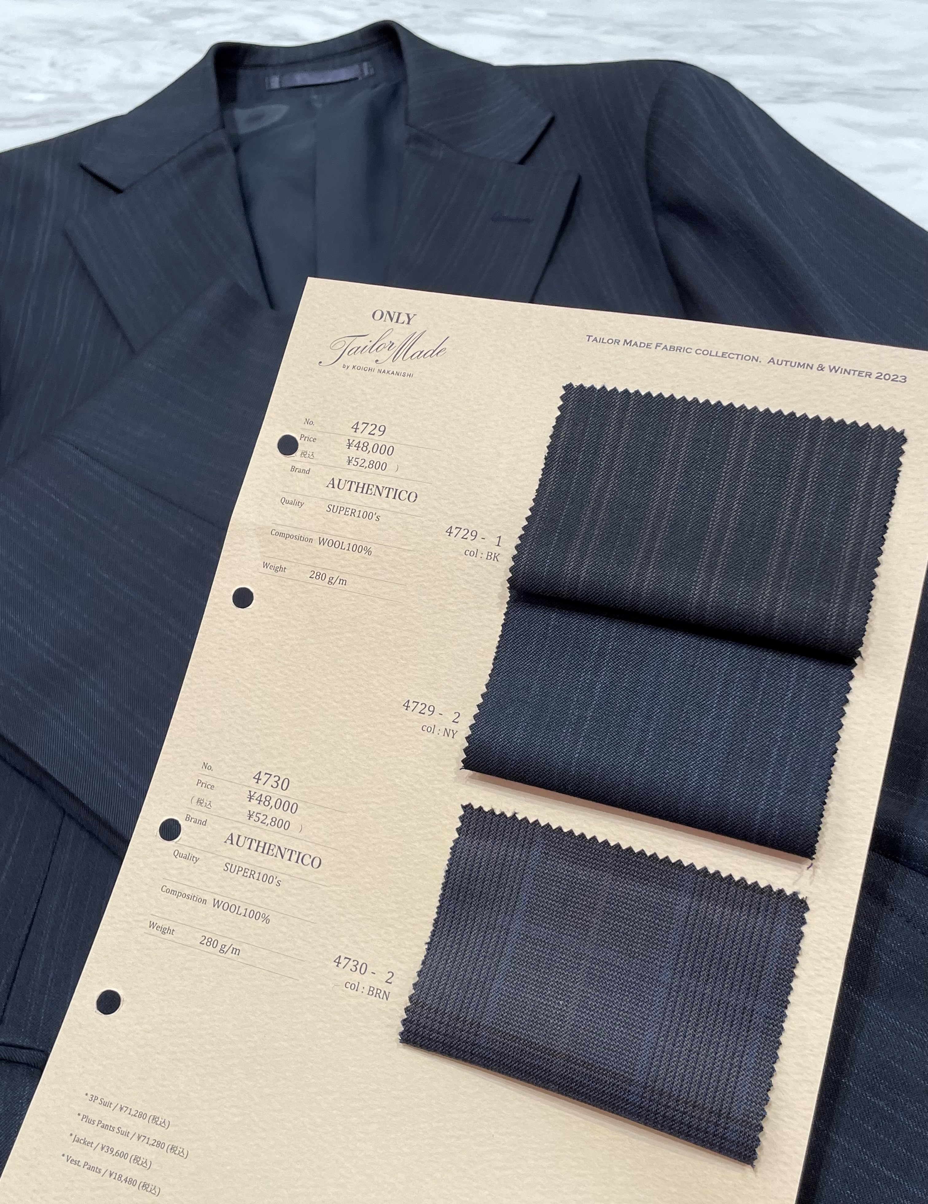 この秋の新作「オーセンティコ」の新生地スーツは好評発売中!