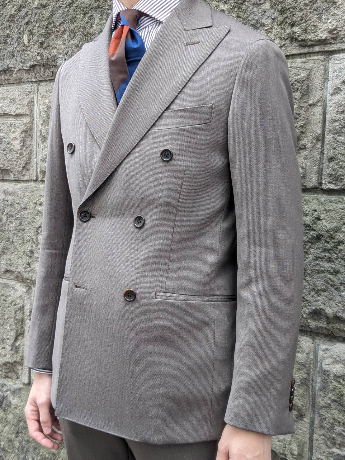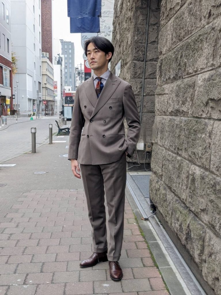 男性的で男らしいシルエットになるダブルブレストスーツですが、ONLYの『サンタルチアモデル』で仕立てる事で