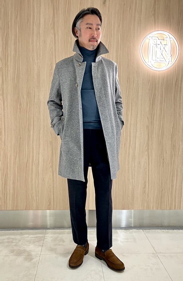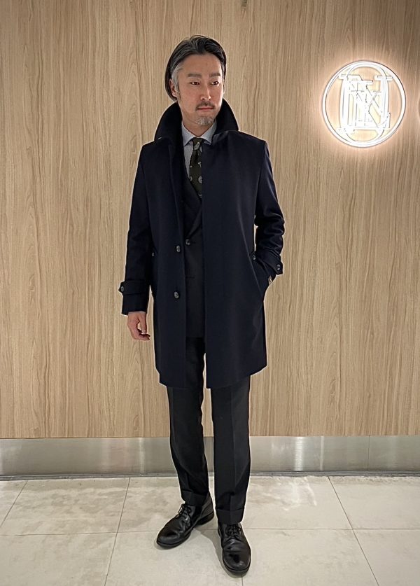 こちらのコート襟裏にもこだわり、まるでオーダーコートの様なたたずまいです!!