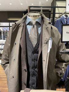 三つ釦チェスターのデザインでジャケットスタイルだけでなく、スーツとの相性も良いのでオンオフ兼用できます👍
