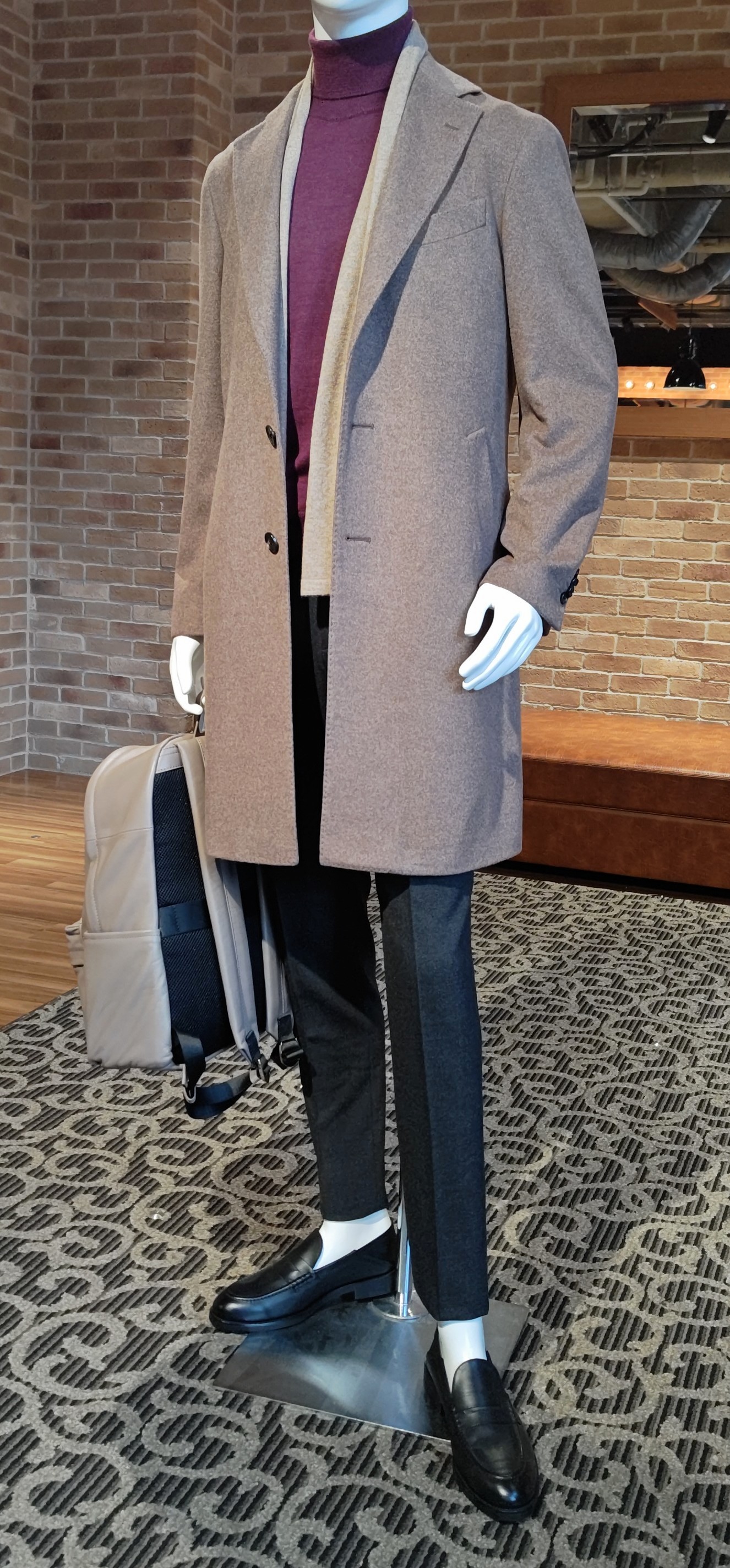 フォーマルで着用する事も出来れば、カジュアルっぽくデニム+ニットの上にサラリと羽織っても様になる万能なコートになります。