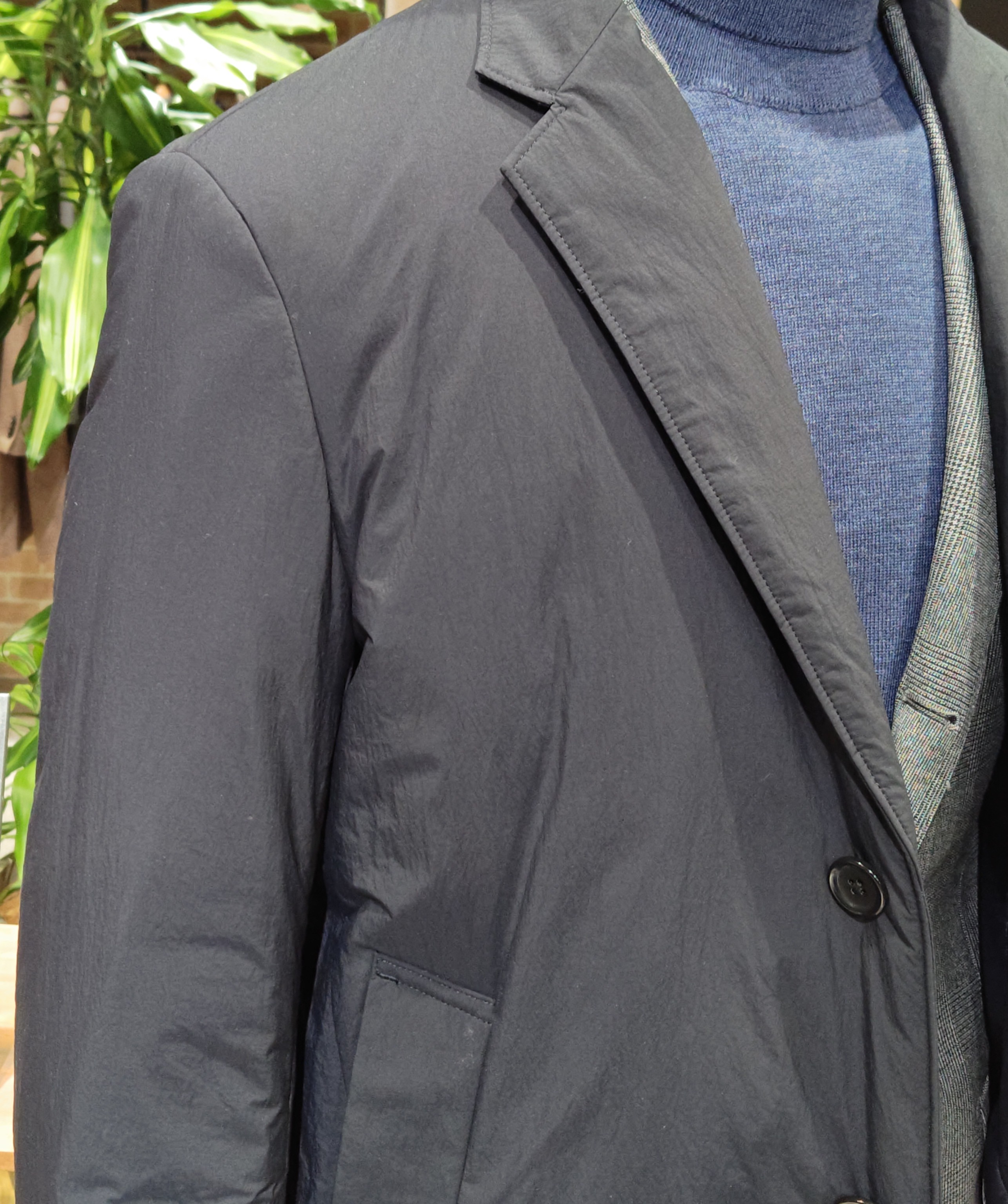 着用感が圧倒的に軽く、スーツ工場で生産をすることで肩回りの副資材を省き、柔らかい仕立てにすることで生地とのマッチングを高めております。