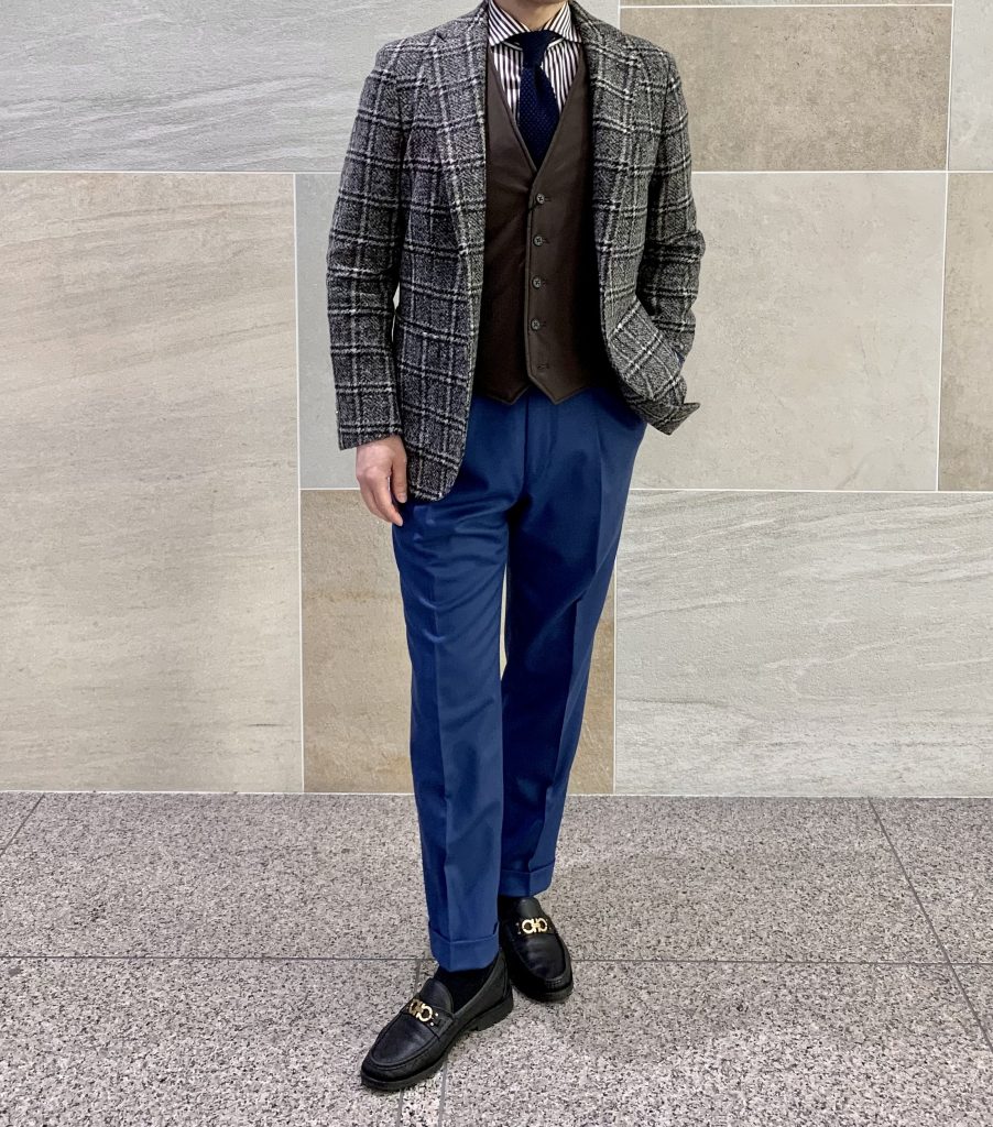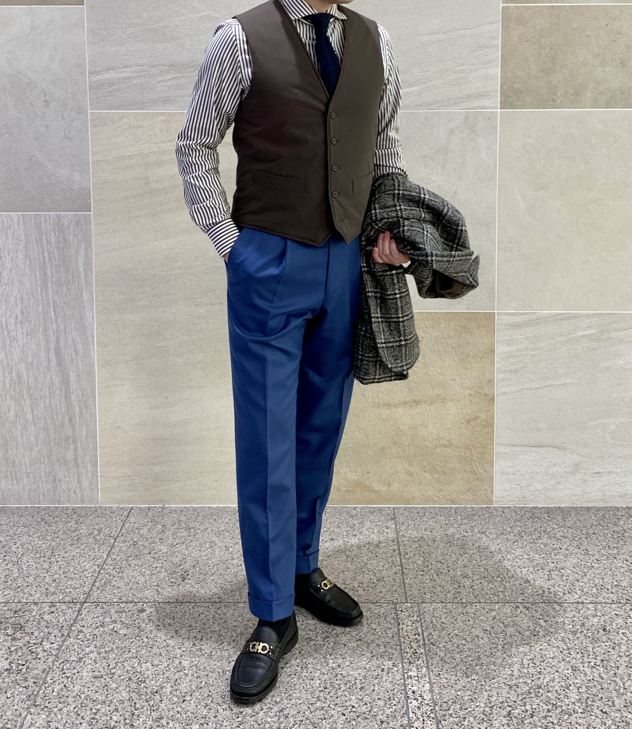 ジャケパンスタイルのインナーとしてコーディネートしました。