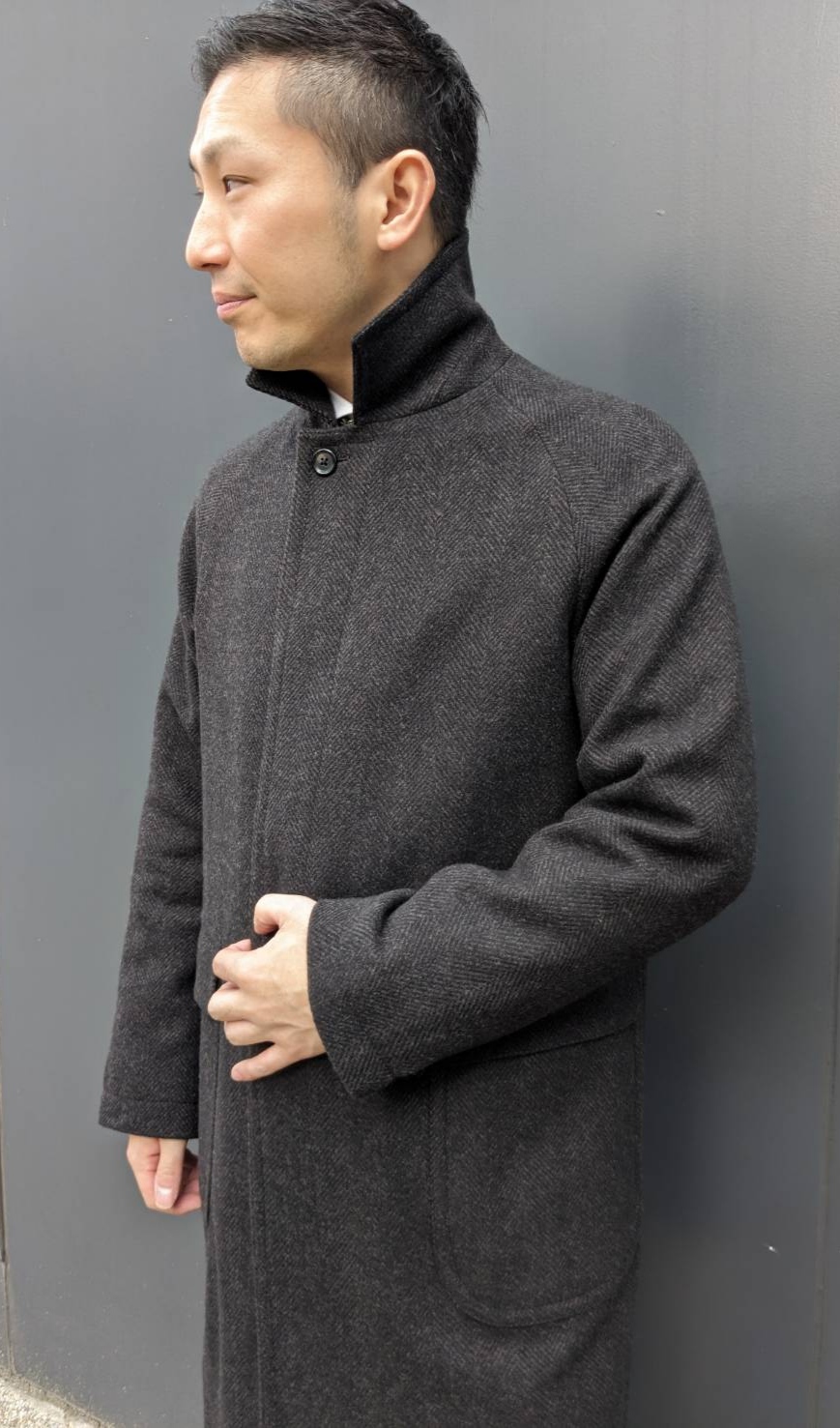 バルカラーコート、正式な呼称をバルマカーンコート(Balmacaan Coat)とするこのコートは襟腰の後方が高く、