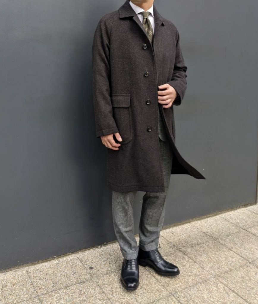 リラックスなシルエットのバルカラーコートはクラシックスタイルとのメリハリが絶妙なこなれ感を演出してくれます。