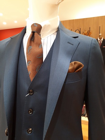 成人式に限らず式典での定番の着こなしスリーピーススーツ。