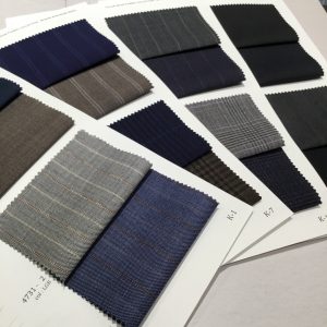 パターンオーダーとなりますので、ゲージ服を用いて採寸致します。 - 生地を選びます