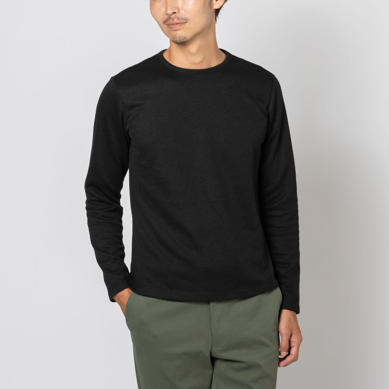 ハイゲージなテクスチャー、肩に合わせた袖の付け方、すっきりめのシルエットでオフスタイルからビジネスカジュアルまでお使いいただける万能ニットです…!