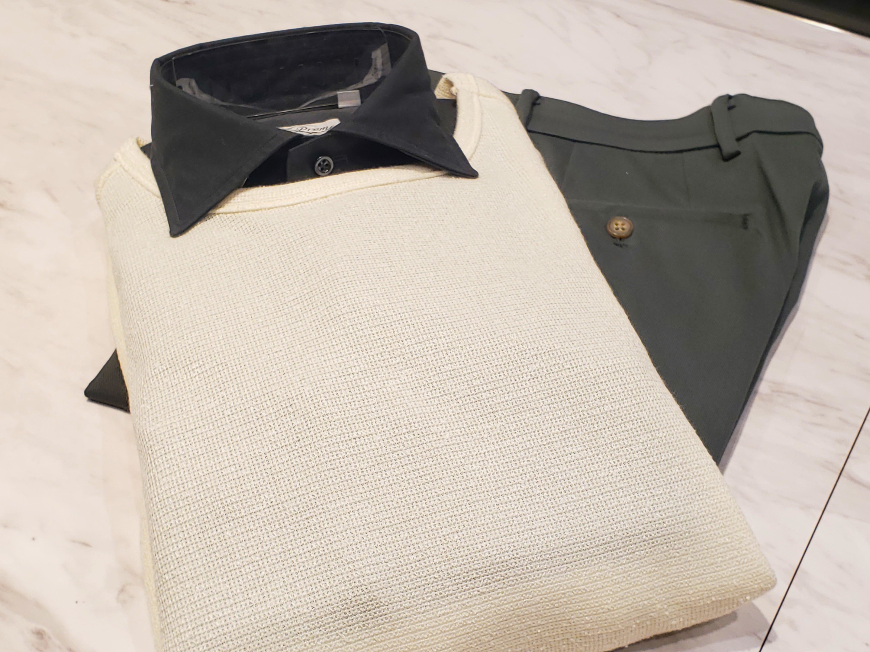 お出かけの際もできるだけ暖かく、かつお洒落でいたいですよね🥺今回ご紹介するニットは、内側が起毛素材でとても暖かいことに加え、ジャケットやスーツの中でもたつかないようシンプルな設計がなされているんです!