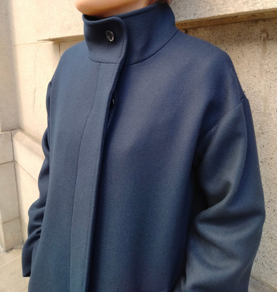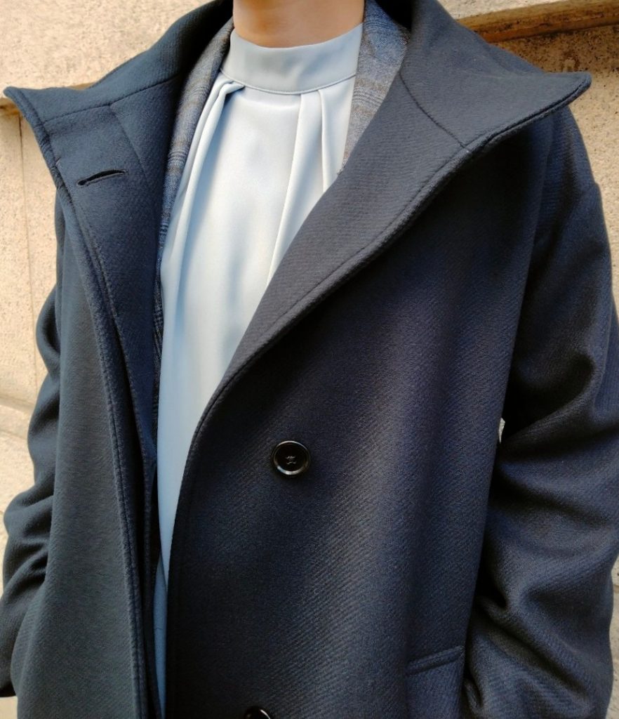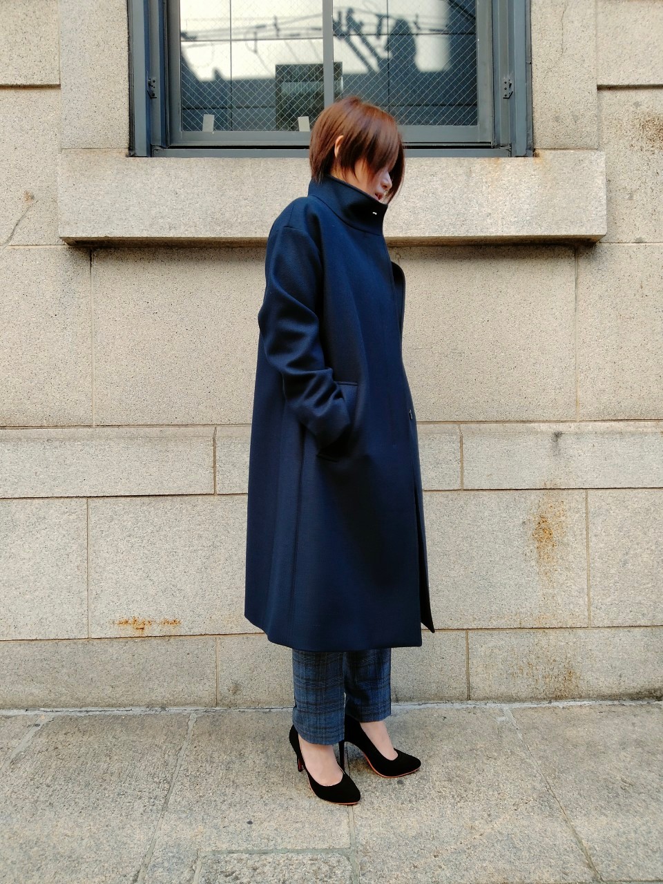 着丈が長めで存在感のある、スタンドカラーのロングコート✨